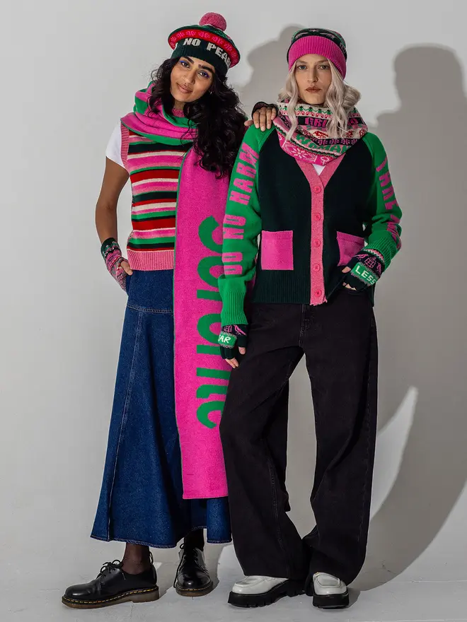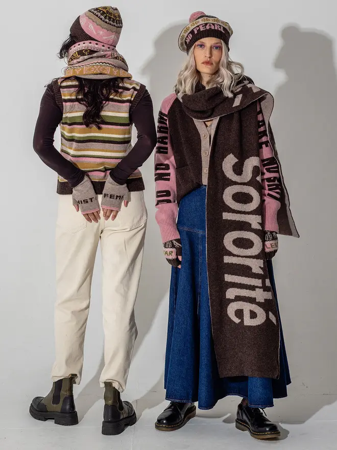 Graphic and impactful, the LES Scarf brings bold typography into timeless knitwear. Knitted in Scotland from supersoft merino lambswool, it offers generous length for wrapping, layering, or draping with ease. A statement in both style and spirit, this scarf combines the warmth of heritage craft with the attitude of modern design. Finished to the highest ethical standards and crafted by skilled makers, it’s a versatile accessory that adds comfort, edge, and purpose to everyday dressing.