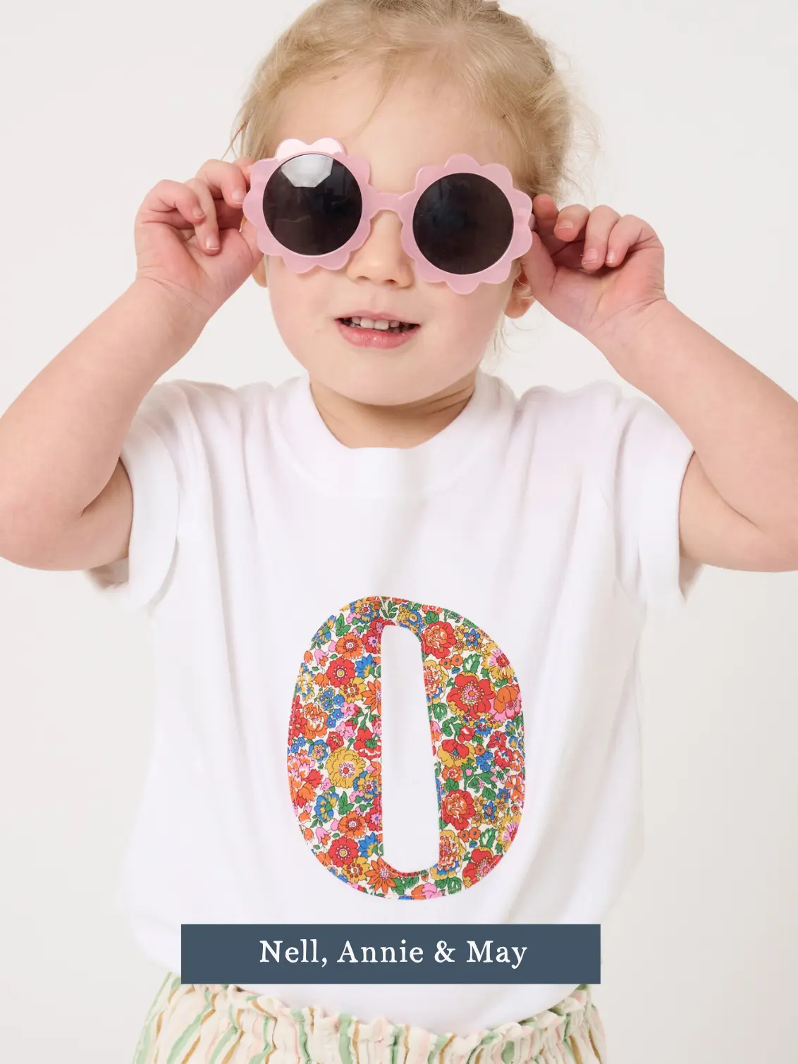 You can also match the fabulous Liberty prints to their personality! These beautifully soft white 100% cotton t-shirts are kind to delicate skin. They are lovingly hand appliquéd with the number you need in your choice of Liberty Print Tana Lawn cotton. Each letter is hand cut and sewn onto the tee, making each one individual & unique.