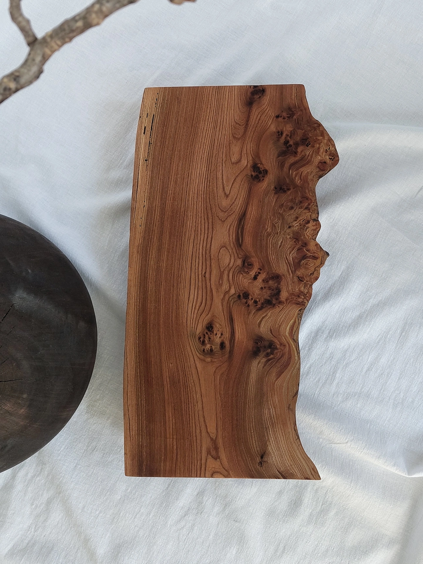 Live-Edge Elm Serving Board with Retro Birchwood Legs
