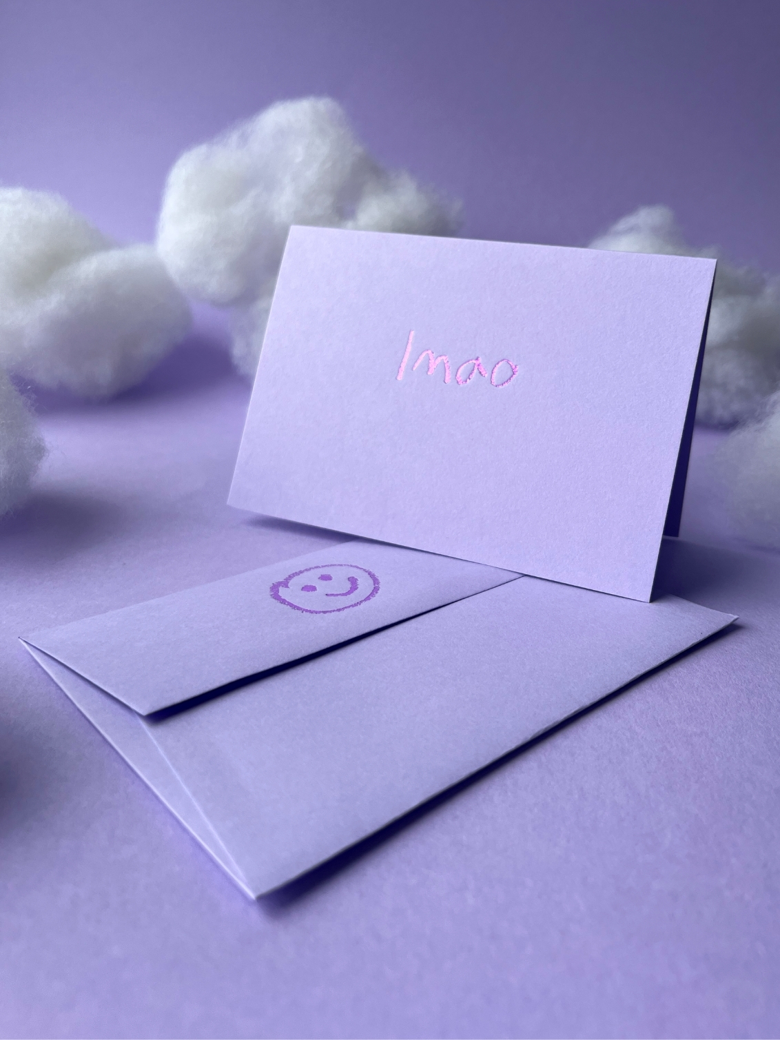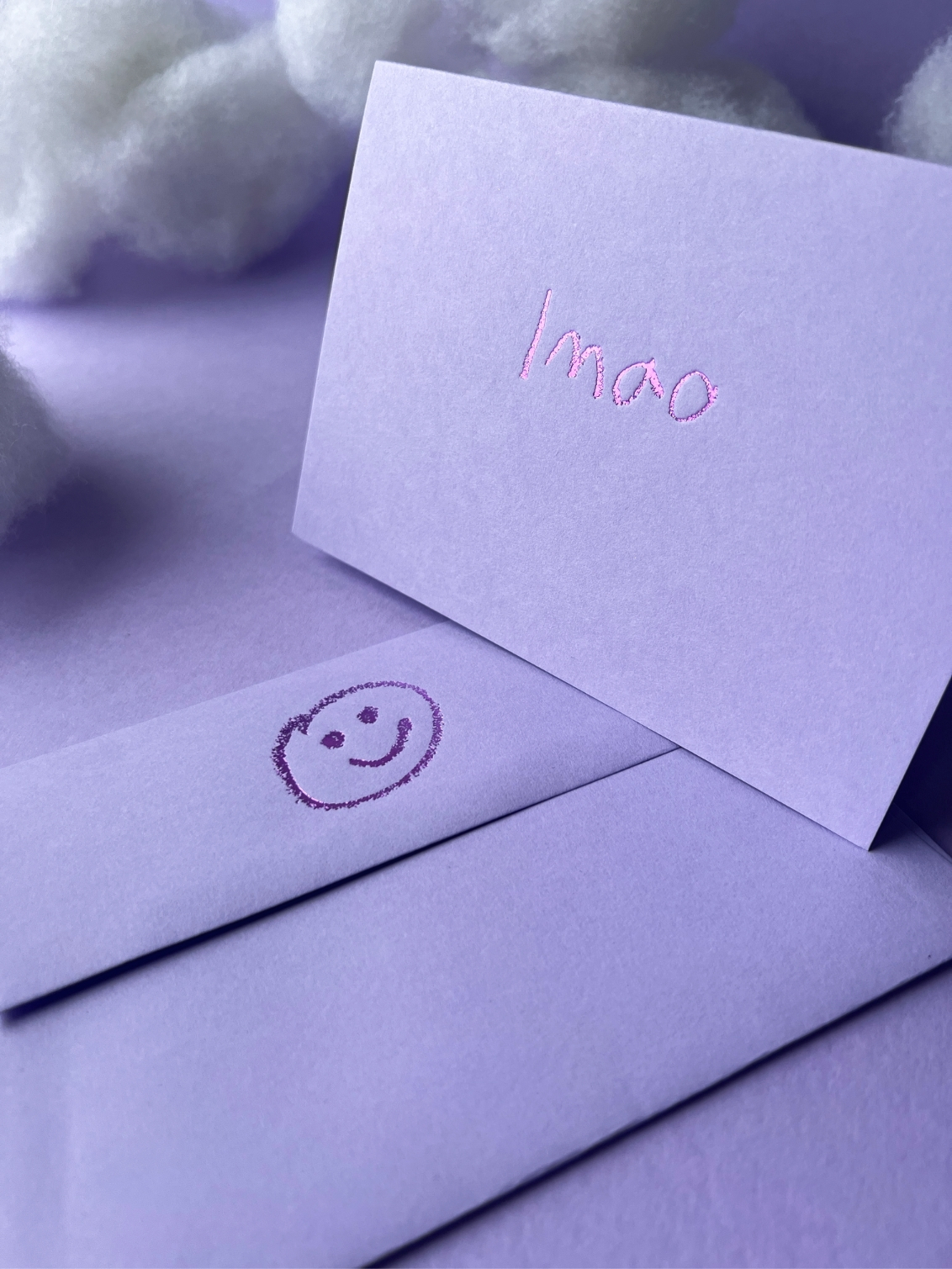 When lol just isn’t enough. lmao is for those stories that make you cry laughing or moments too funny to text alone. Hand foiled on candy lavender coloured paper with shiny metallic detail and a cheeky smiley printed on the matching envelope.