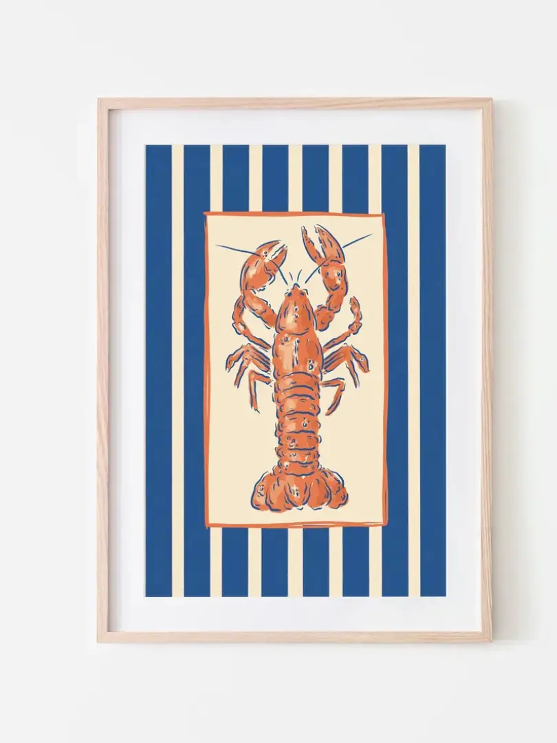 This fun coastal themed lobster print would find its perfect place in any bathroom or coastal home.