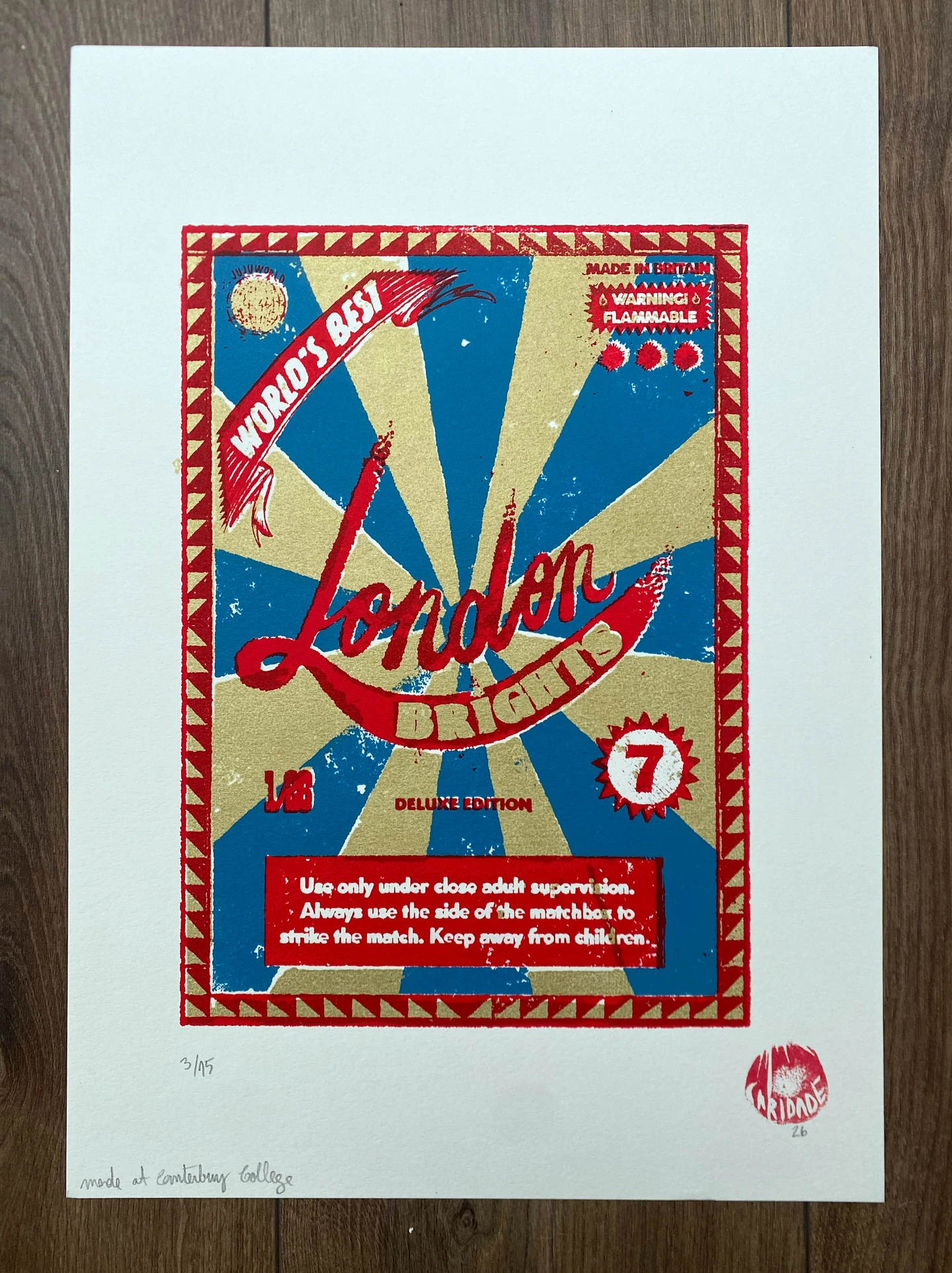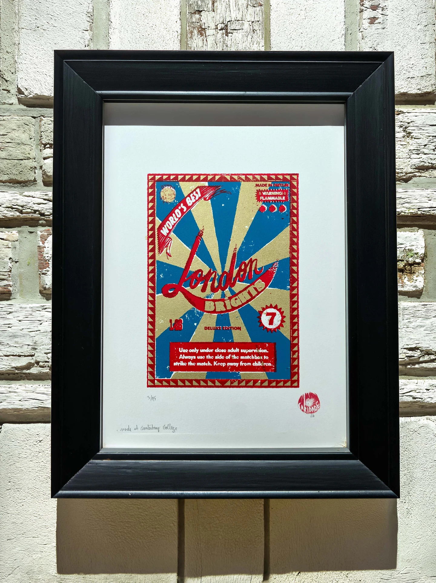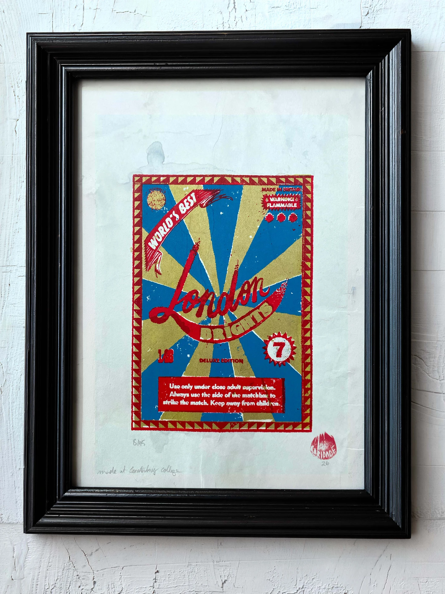 Bring a touch of nostalgic British charm to your space with this striking London Brights limited edition screen-print, inspired by the bold graphics of fireworks labels.
