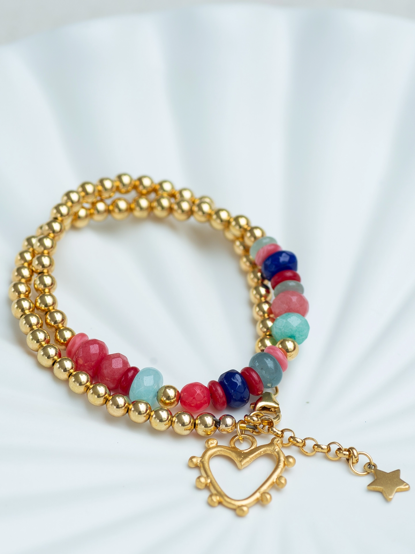 The Love Drunk Wrap Bracelet is a playful mix of colour and shine. This double-wrap design combines sleek metal beads with a pop of vibrant jade, finished with a mini studded heart and delicate star charm. Easy to wear and full of personality, it’s a joyful everyday piece made for stacking, gifting, or wearing solo when you need a little extra sparkle.