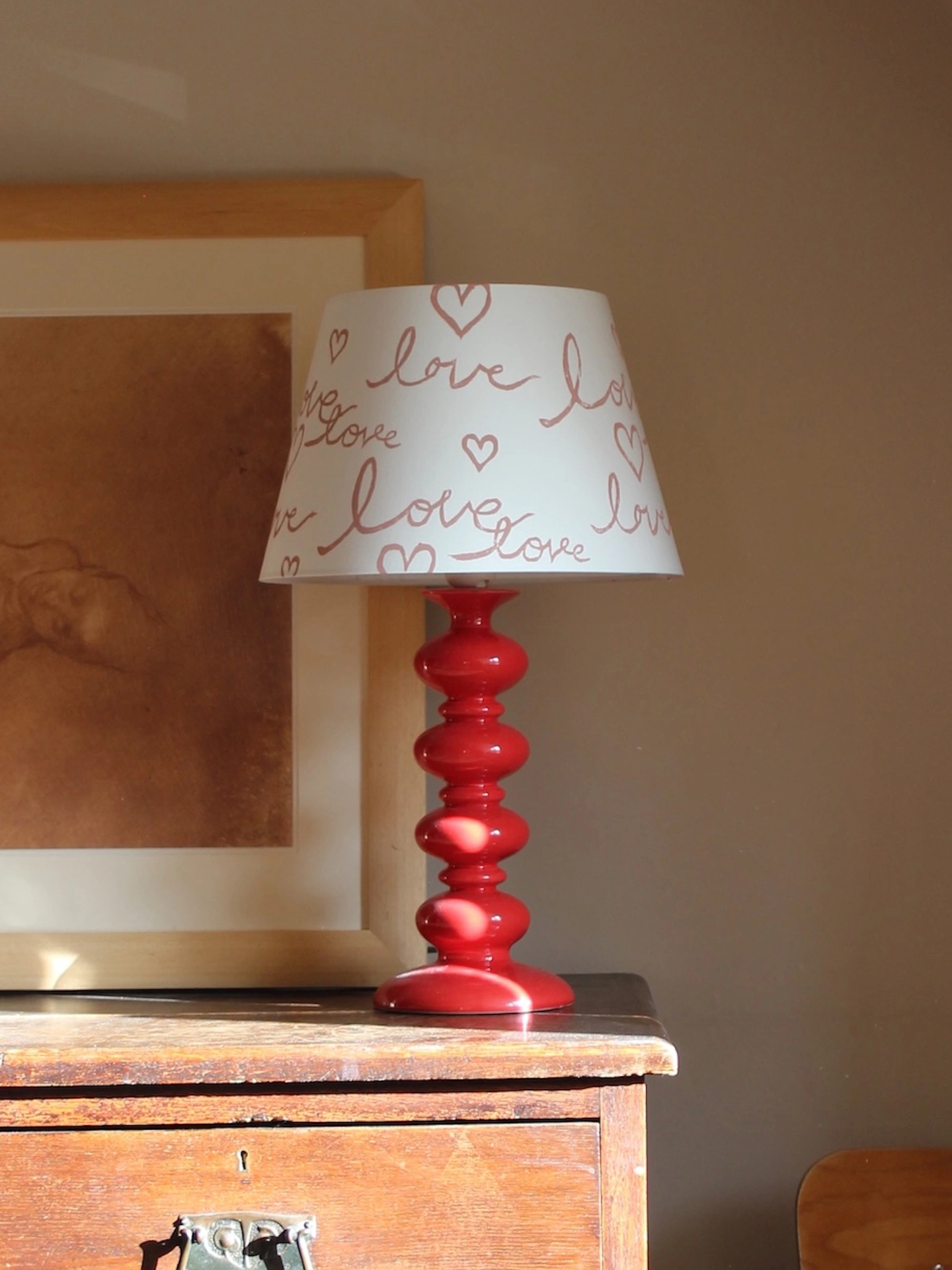 Love Motif & Hearts – A lampshade with hearts and heartfelt lettering bring joyful decoration and emotional warmth