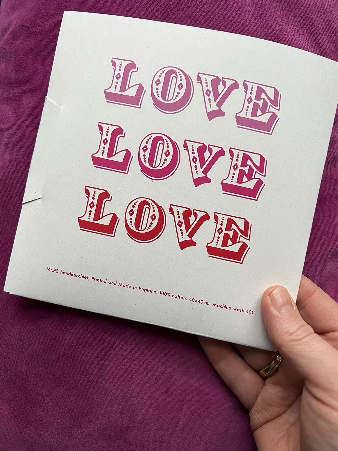 This bold typographic printed cotton handkerchief makes a lovely present for a partner, or parent.