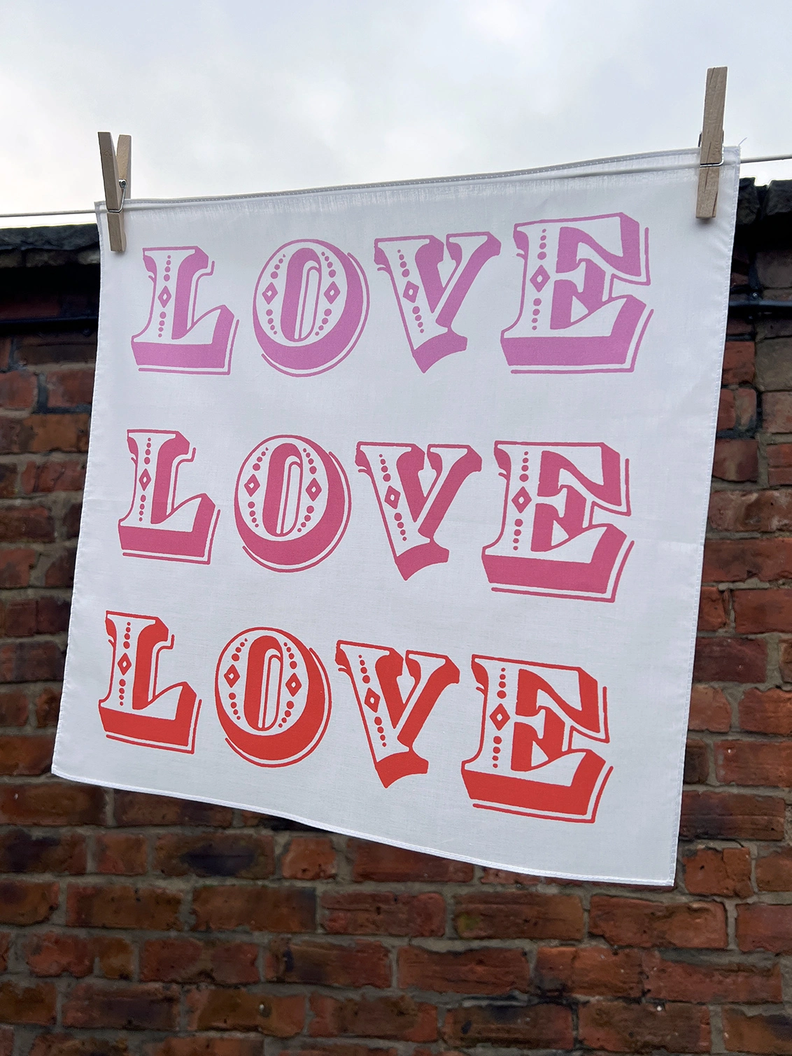 Share the love with this vintage circus font inspired design, printed with three shades of pink and red.