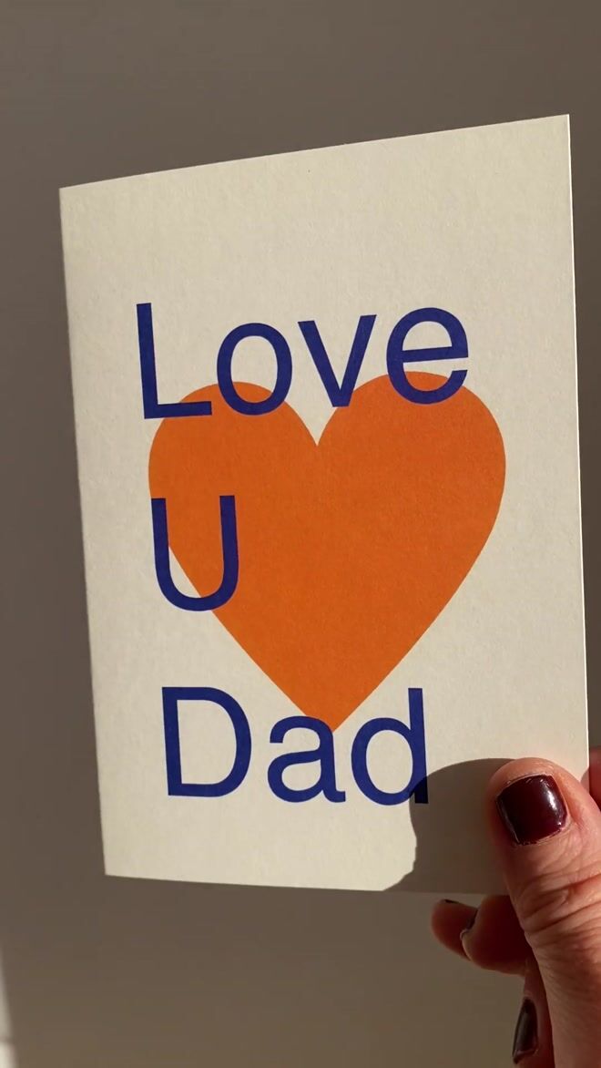 A bold and modern Father’s Day card featuring a large heart with a playful “Love U Dad” message...