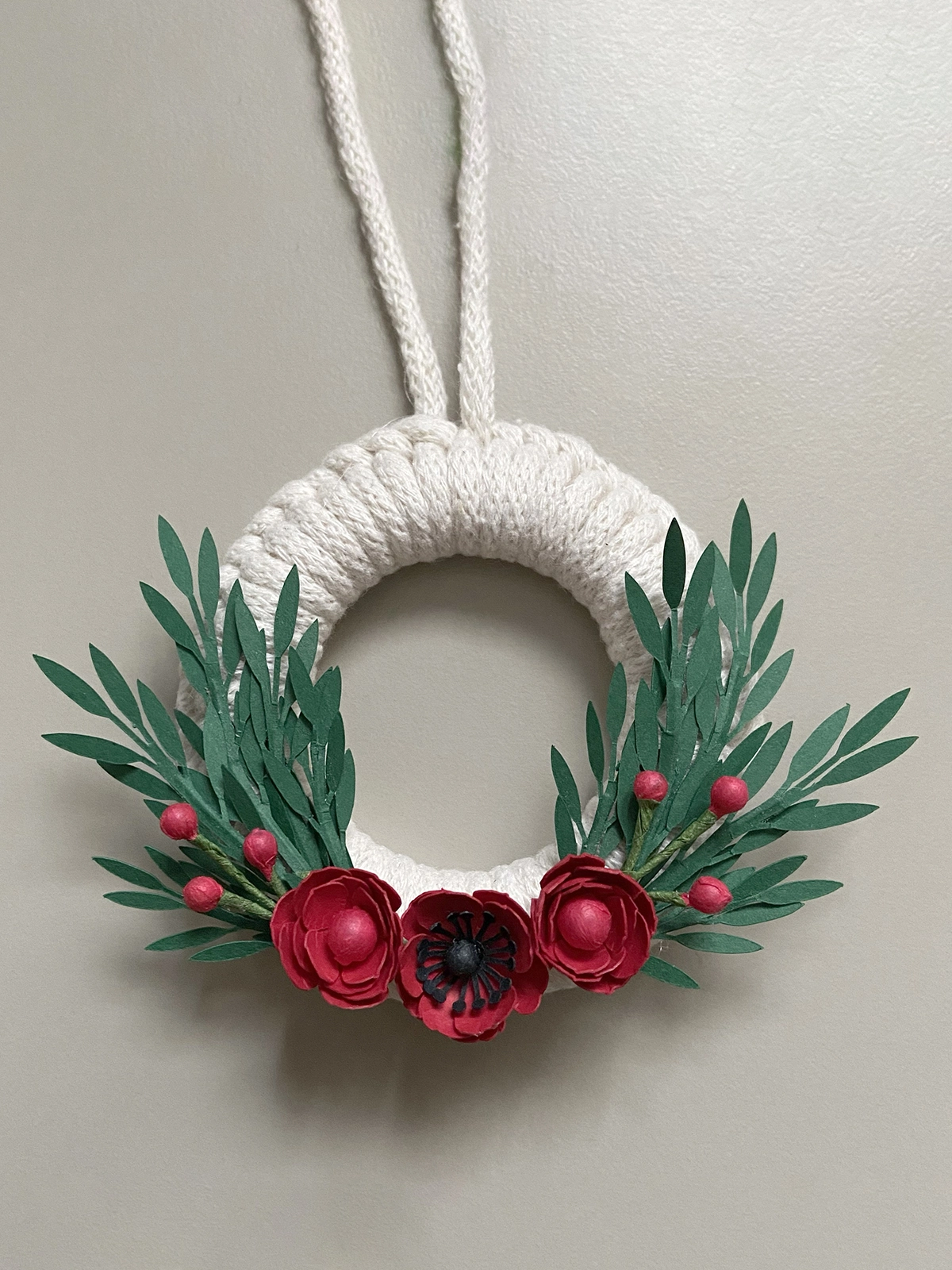 It is a kit for you to make a Macrame Christmas Wreath Ornament on a wooden ring. We have a youtube video will able to show you the whole process.