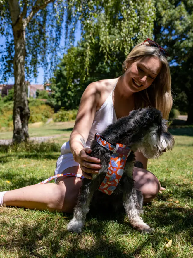 Introducing our Magical Mushrooms deluxe dog harness! This step-in dog harness is fully adjustable for the perfect fit. Designer dog harnesses don’t have to be plain. Our iconic fabric is bound to bring attention to your furry best friend. The easy to cle...