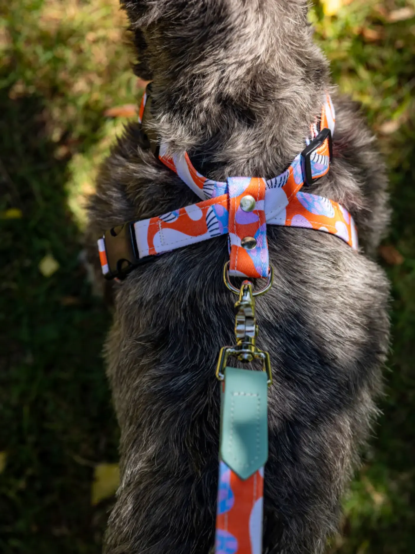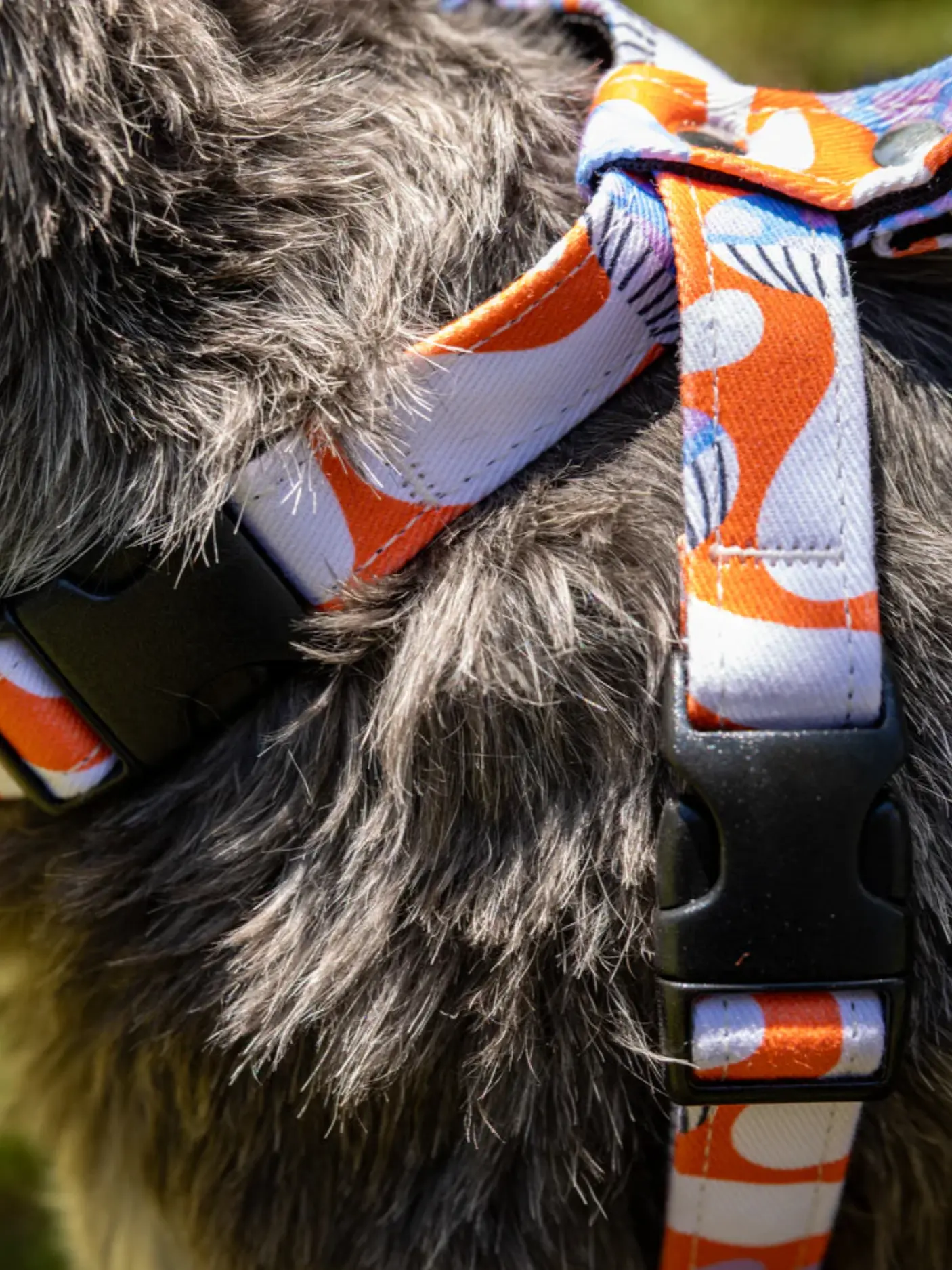 Introducing our Magical Mushrooms deluxe dog harness! This step-in dog harness is fully adjustable for the perfect fit. Designer dog harnesses don’t have to be plain. Our iconic fabric is bound to bring attention to your furry best friend. The easy to clean material is soft and comfortable for your pup, allowing every adventure to be carefree.