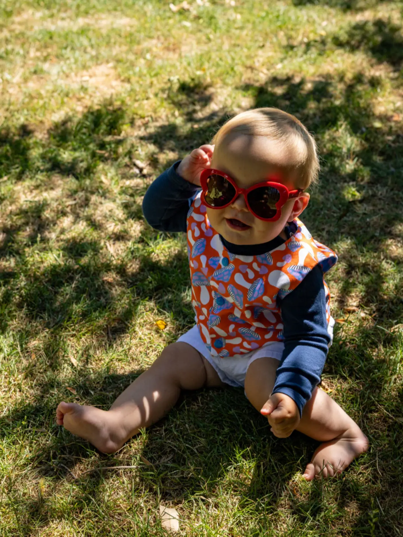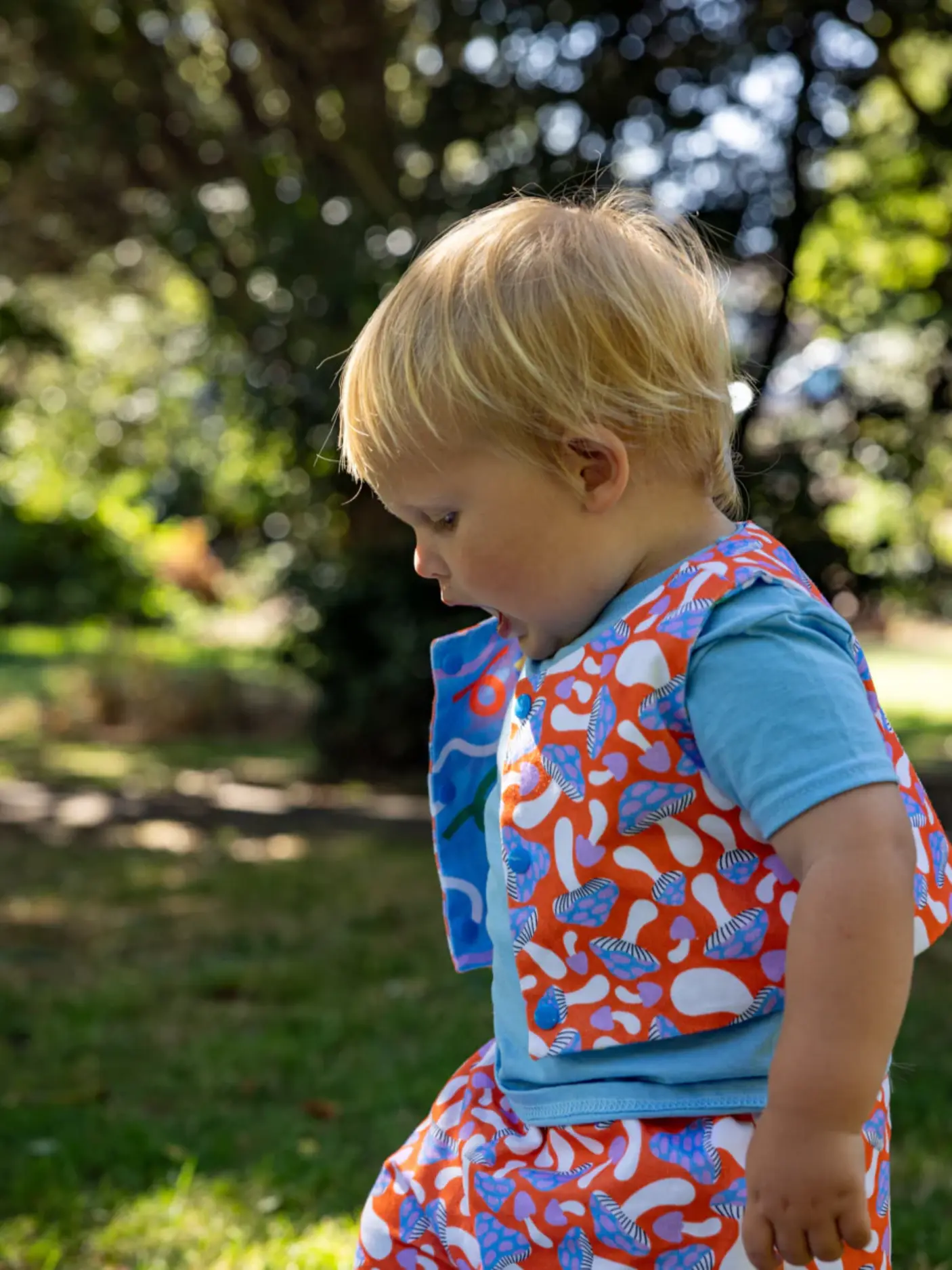 Made from 100% Organic cotton, this vest is soft and easy to wear. It also makes a great transitional piece. We love it worn over dresses or sweatshirts, the reversible design means that the possibilities are endless!