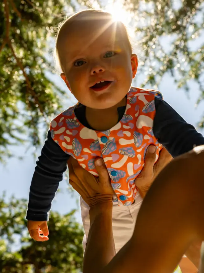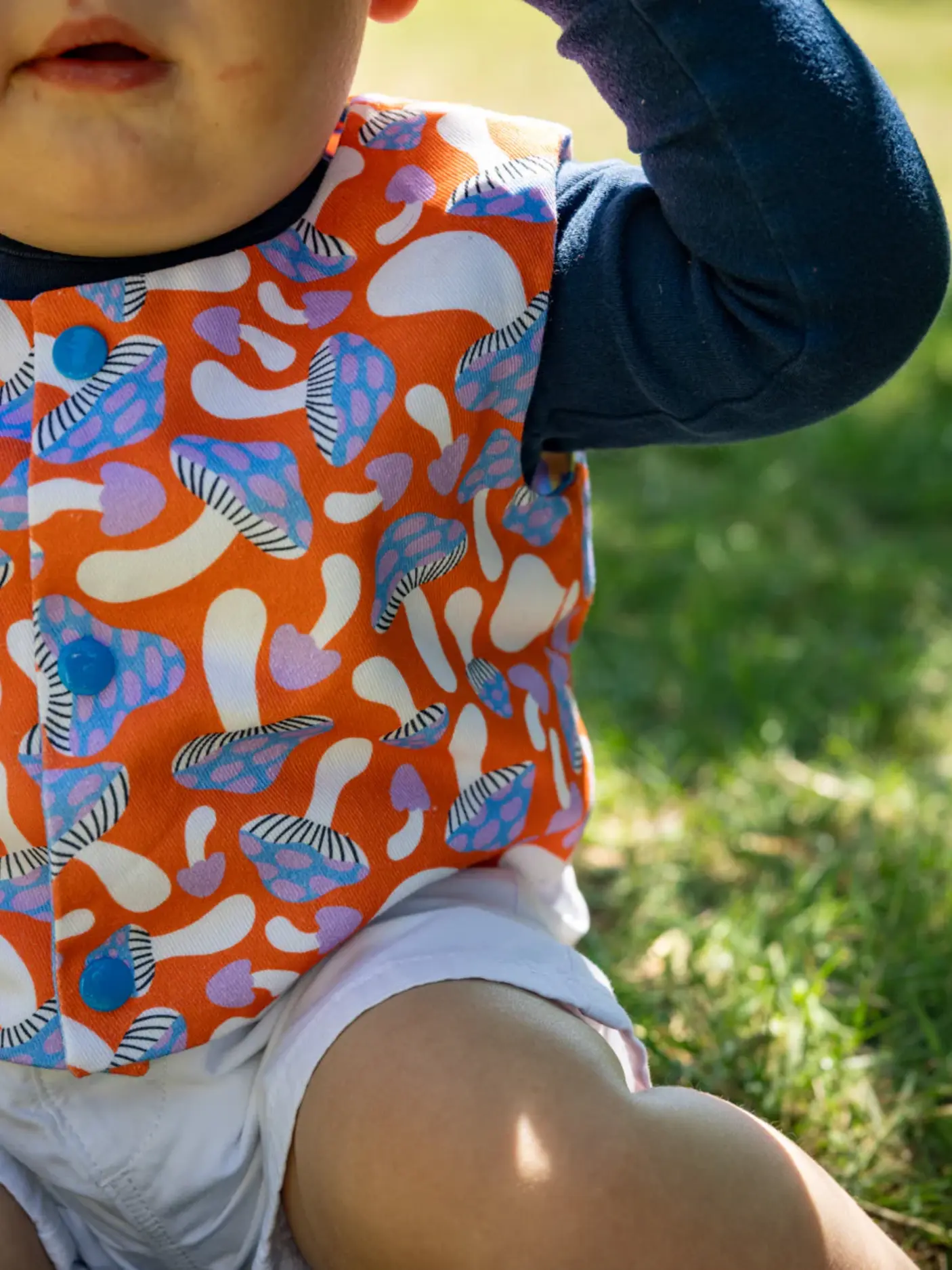 Introducing our Magical Mushrooms Organic cotton vest, specially designed to make mini wardrobes more fun, practical + versatile. Ethically handmade in the UK from sustainably sourced materials.
