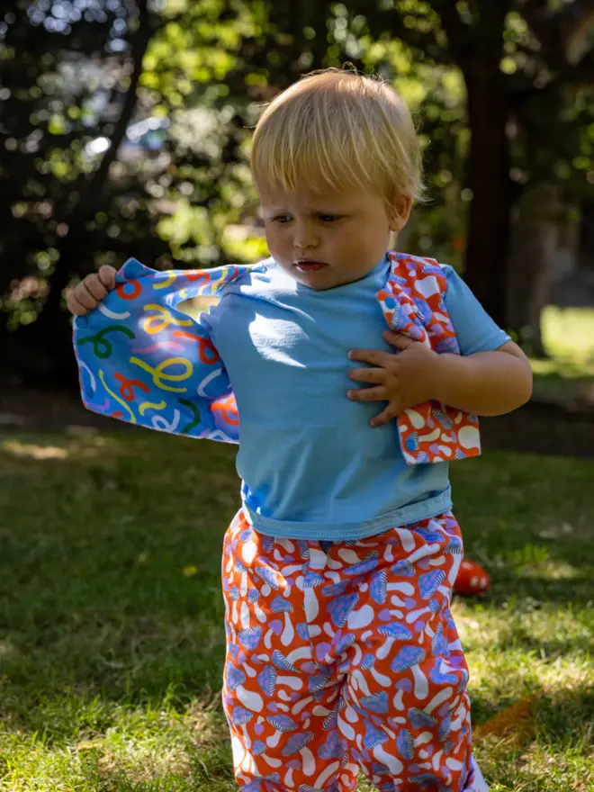 Our kids clothes are unisex and are made to be mixed and matched. Why not pair with a matching pair of trousers to complete the look?