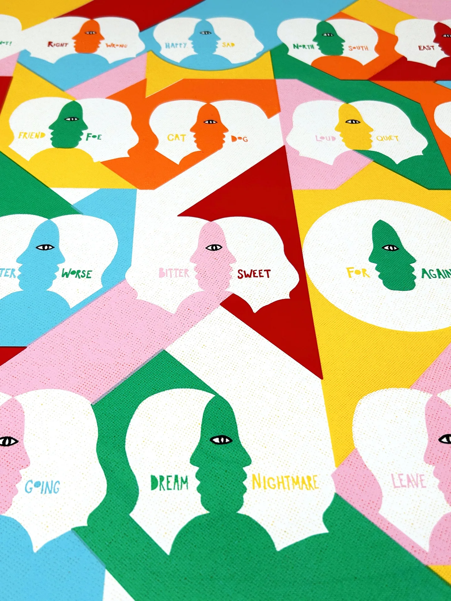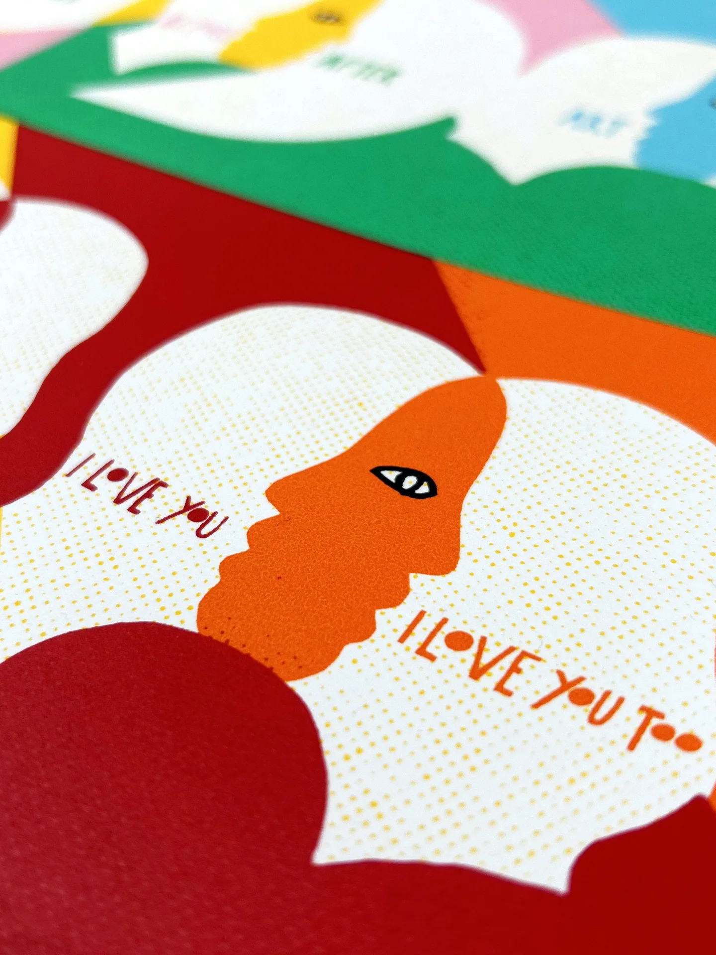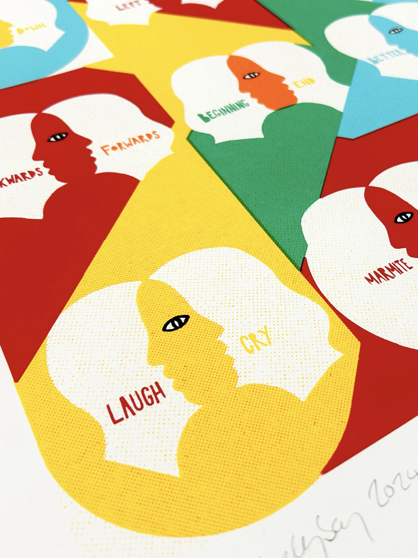Magnets is a 7 layer screen print hand finished on beautiful 300gsm Somerset Satin paper. The theme is making space for each others opinions and identities and still managing to find love and empathy. Otherwise, what's the point?!