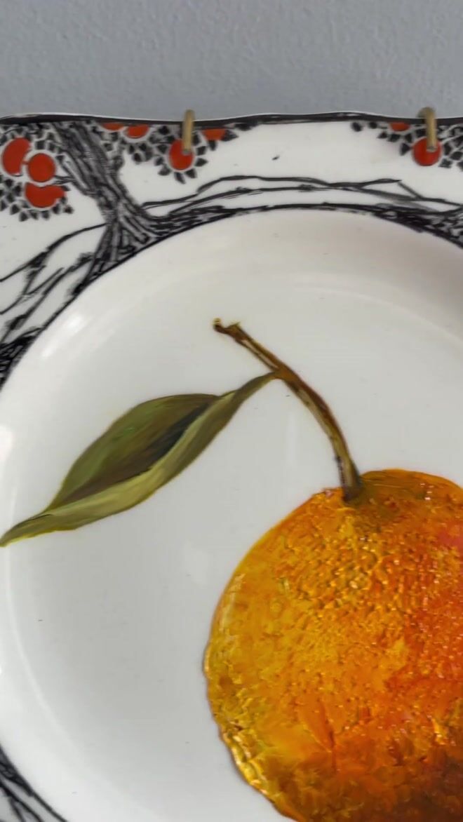 Mandarin Orange Oil Painting On Art Deco Ducal Tea Plate