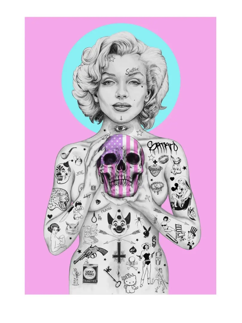 "Bombshell" print of a tattooed Marilyn Monroe.