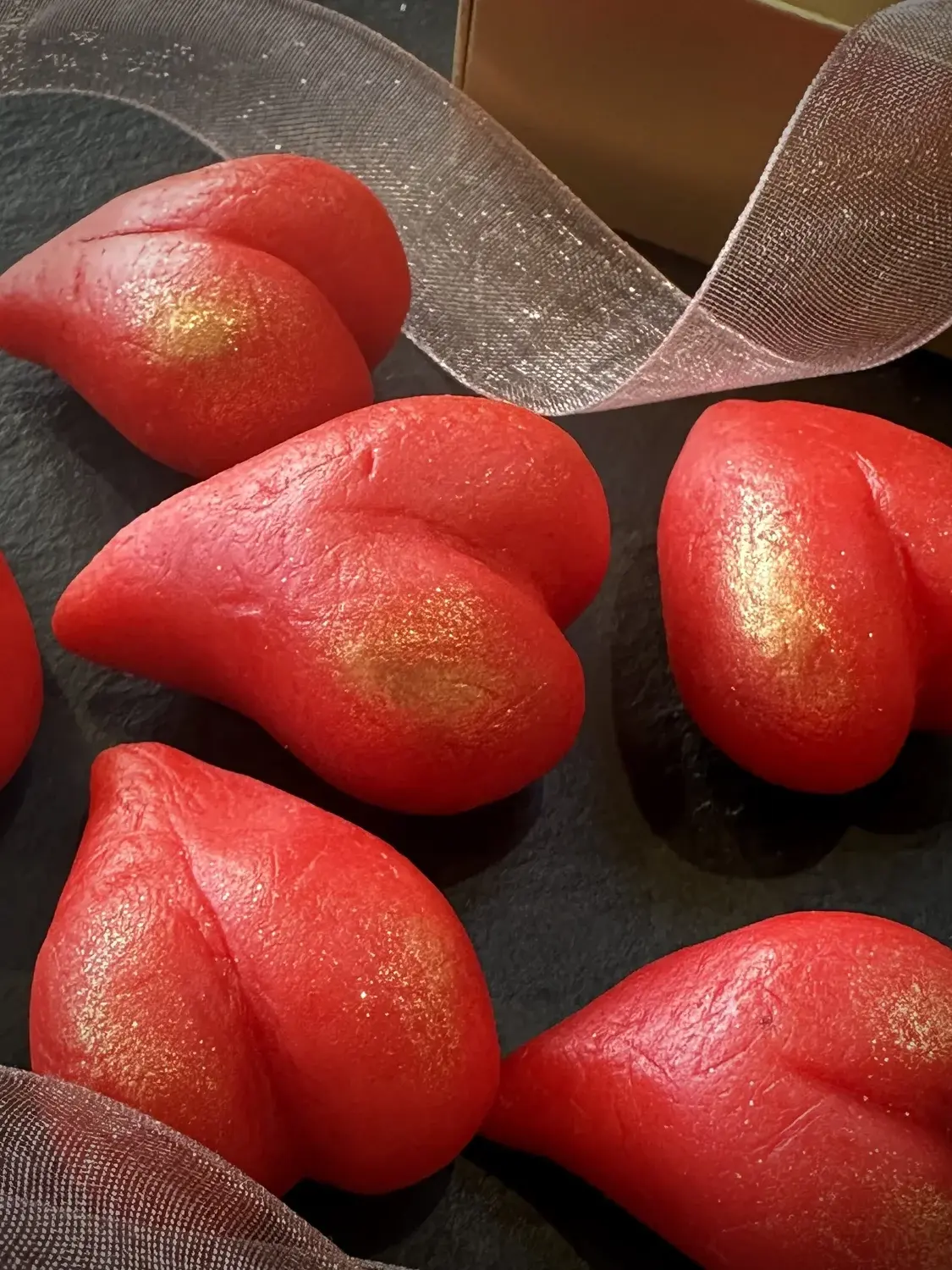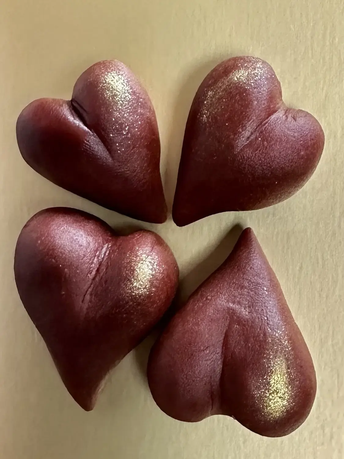 These cute little marzipan hearts come in original marzipan with two other flavours, Cherry and Chocolate (made with cocoa powder).