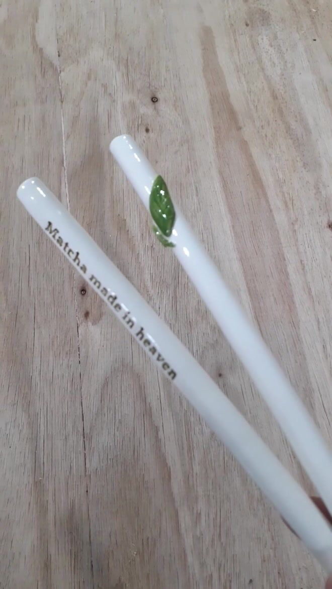 Sip your matcha in style with these handmade ceramic drinking straws — perfect for iced matcha lattes, smoothies, or your morning green tea ritual. Each pair is crafted from white earthenware clay, glazed to a glossy finish, and finished with a hand-modelled green leaf motif.