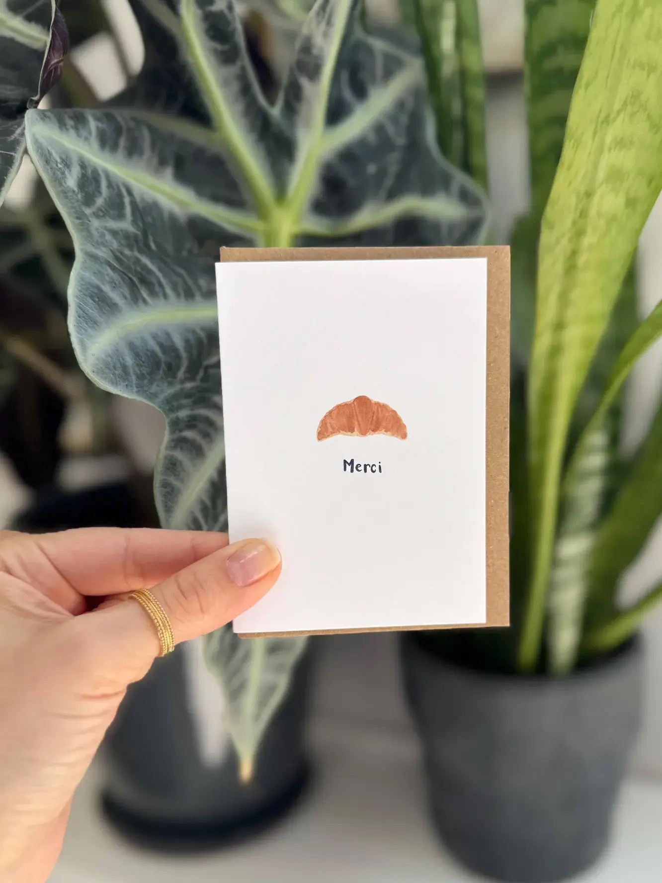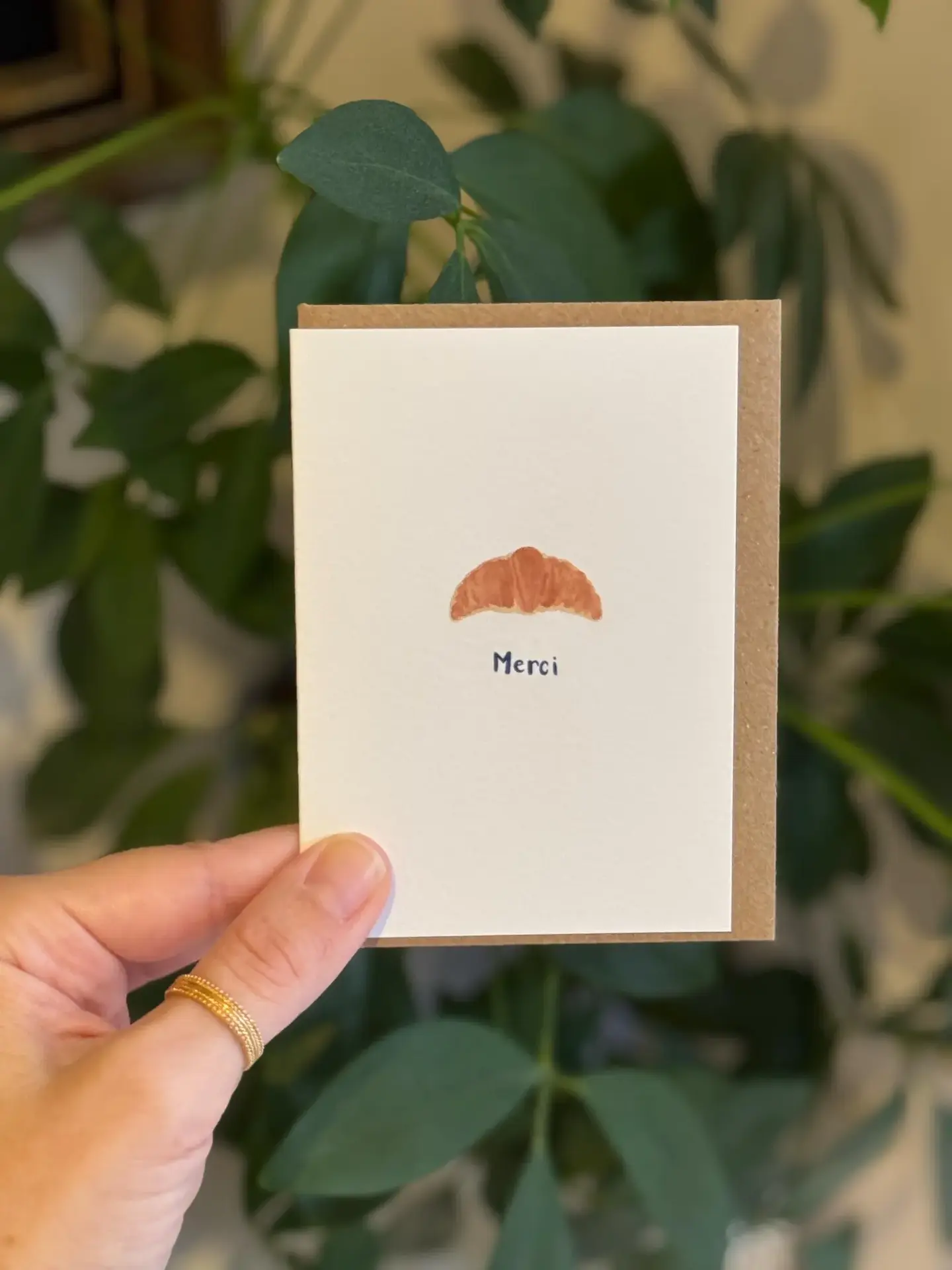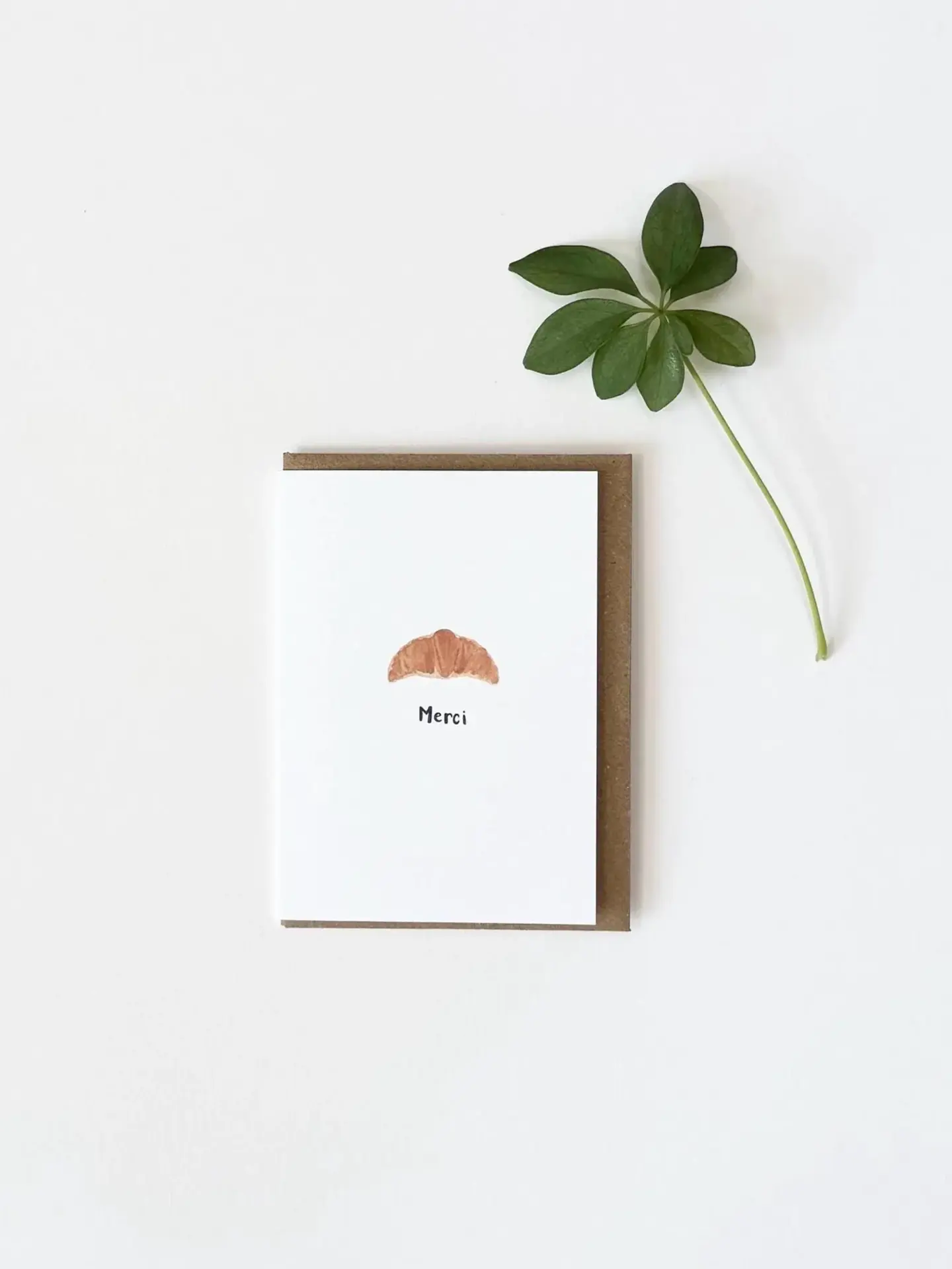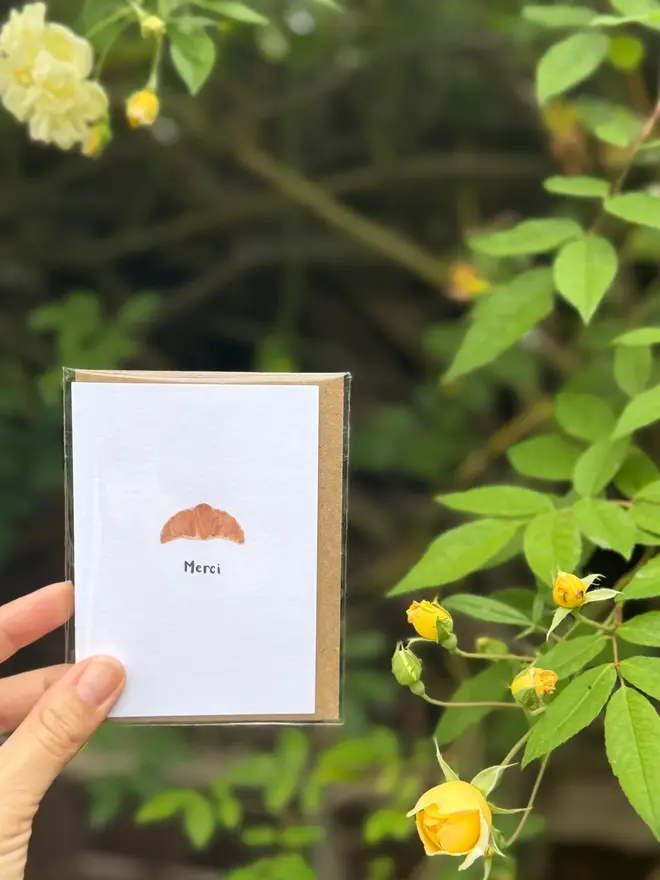 A merci croissant watercolour mini thank you card. Hand painted by me and professionally printed on delicately textured matte white 324 gsm luxury print paper...