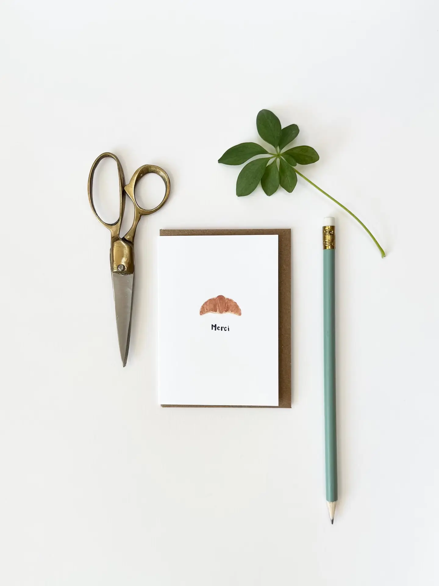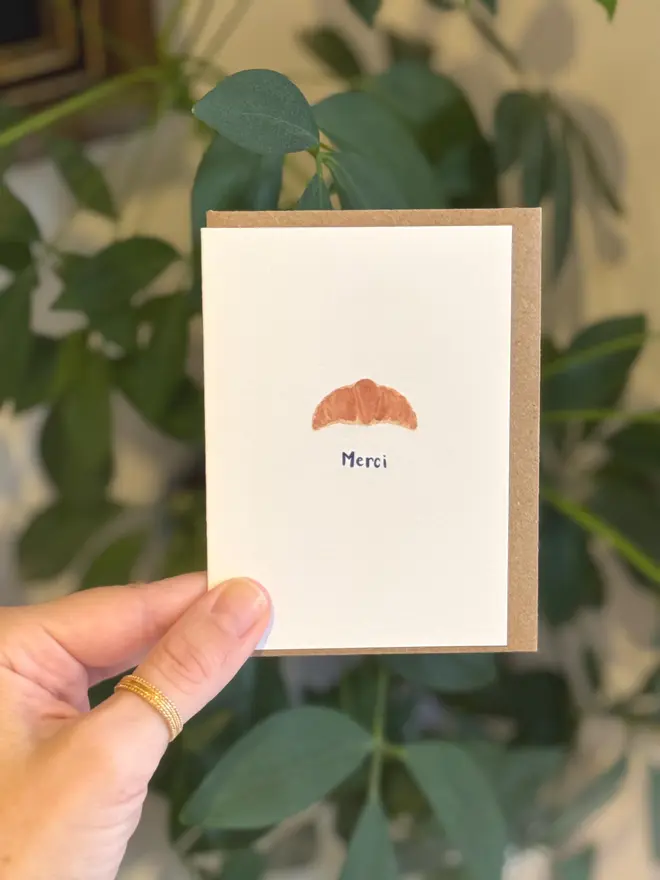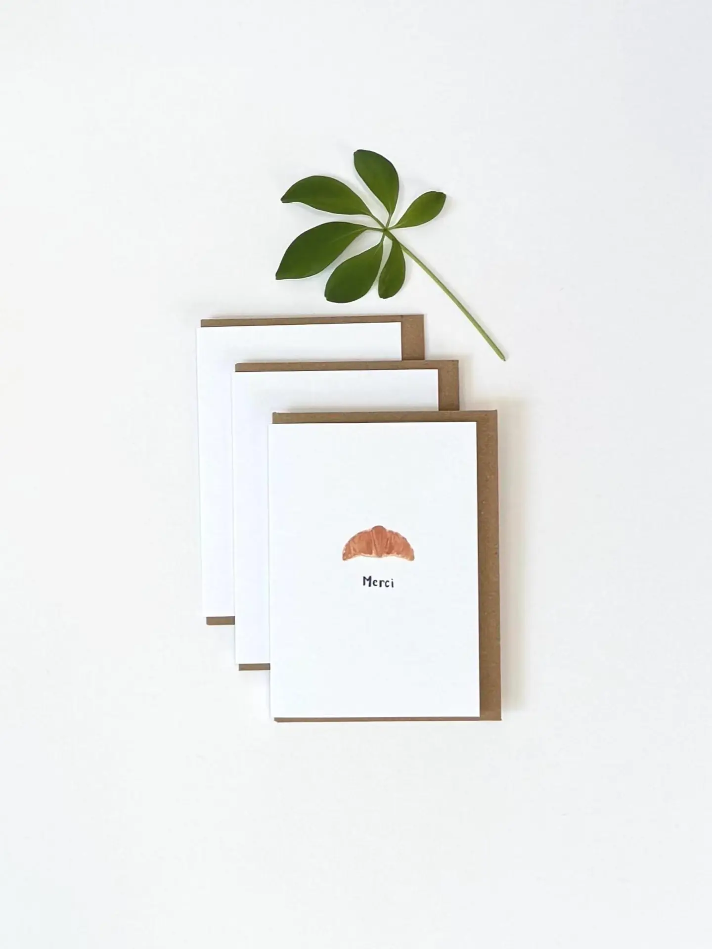 Pack of 3 Merci Croissant watercolour mini thank you cards. Hand painted by me and professionally printed on delicately textured matte white 324 gsm luxury print paper.
