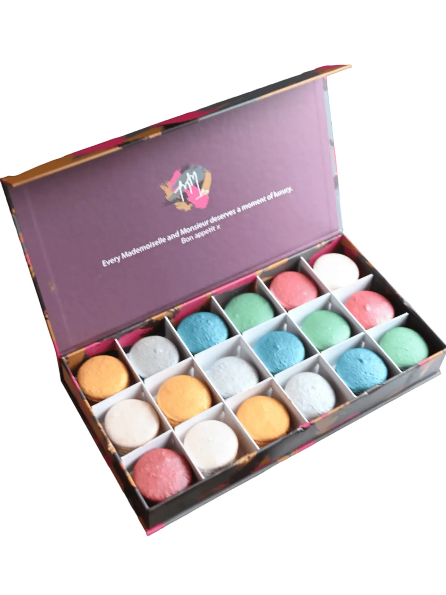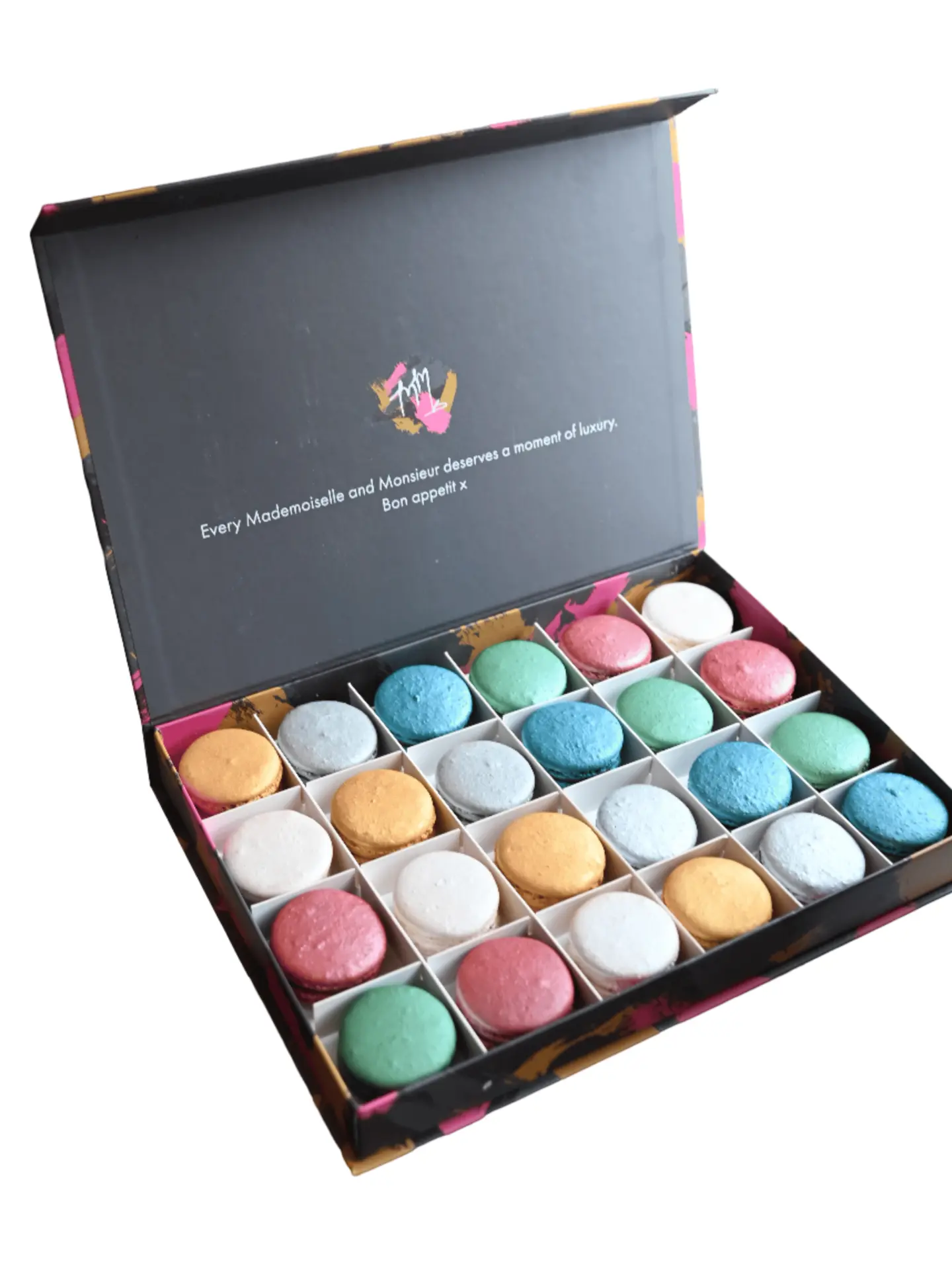 A shimmering selection of our signature macarons, dressed in a metallic finish that catches the light beautifully. Elegant, playful and designed to impress, they are perfect for making any celebration shine...