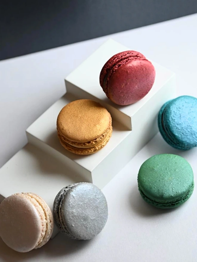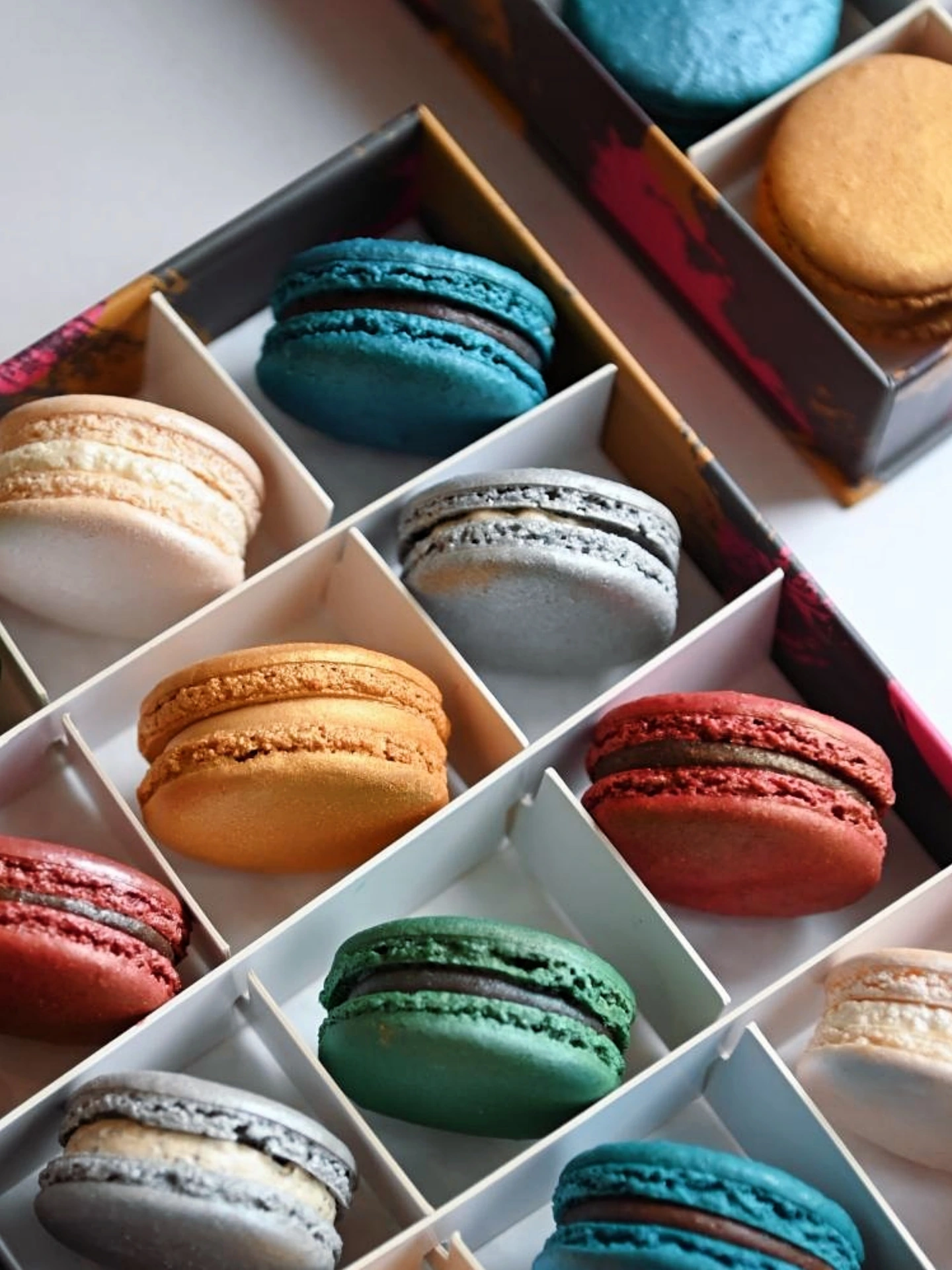Use them as a show-stopping addition to cakes, a sparkling highlight on dessert tables, or a luxury gift that feels truly magical. Whether it’s a birthday, anniversary or simply an excuse to indulge, these macarons bring sophistication with a touch of sparkle.