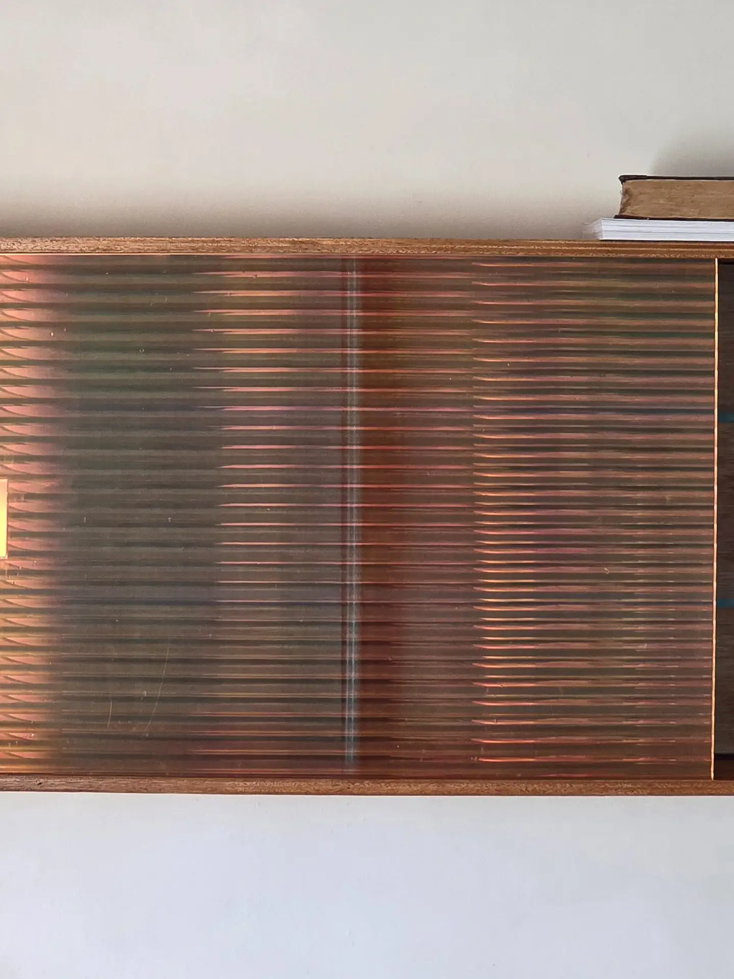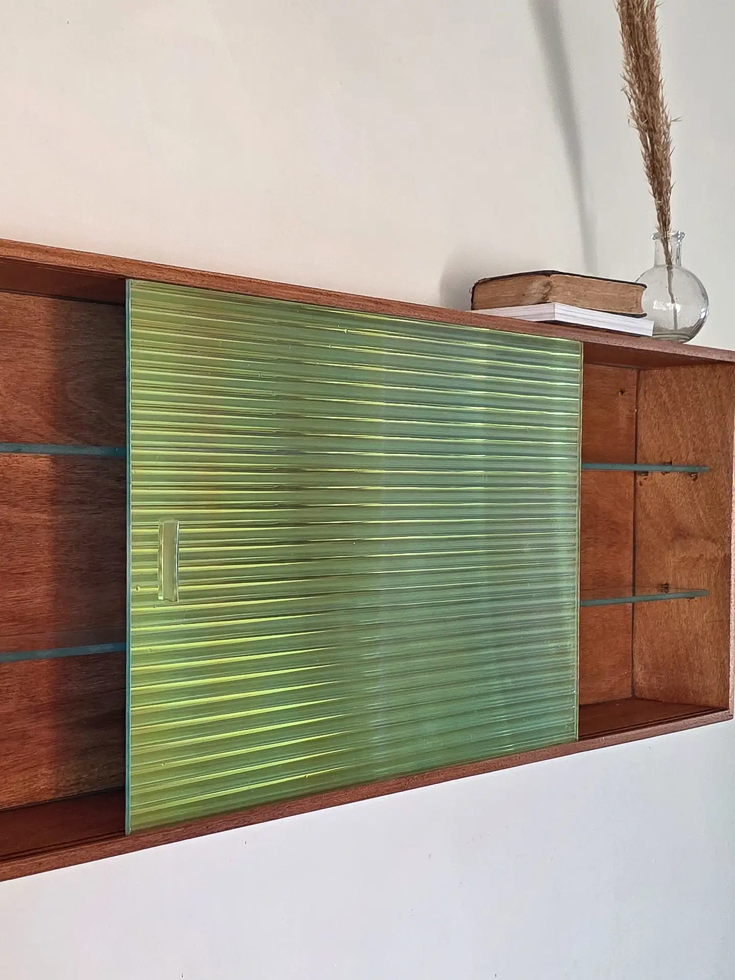 Mid Century Iridescent Reeded Glass Wall Cabinet