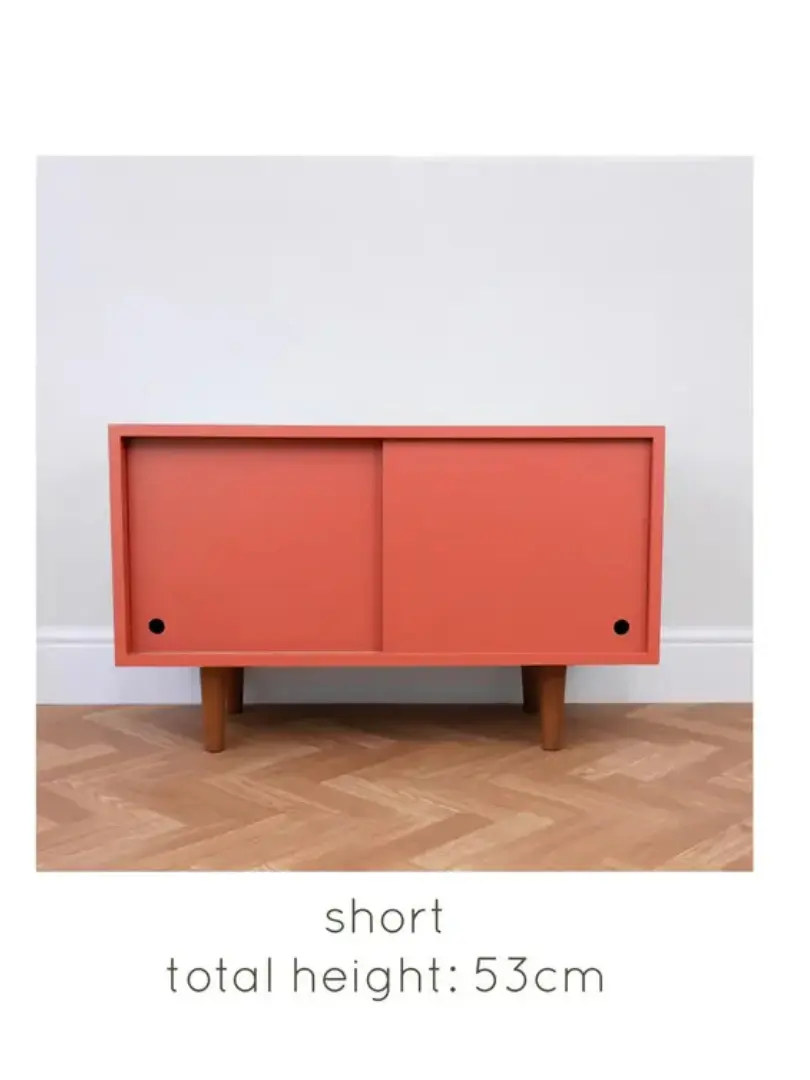 Mid-century style cupboard, ideal for use as a record cabinet, media TV unit or storage This piece is handmade to order, you can therefore choose the legs to suit your home.