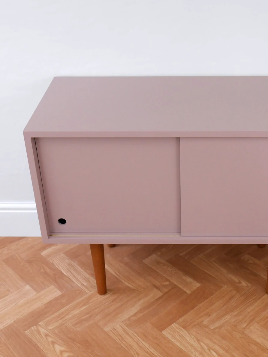 Mid-century style cupboard, ideal for use as a record cabinet, media TV unit or storage This piece is handmade to order, you can therefore choose the colour and legs to suit your home.