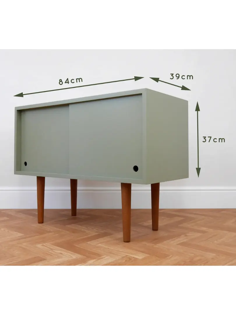 Mid-century style cupboard, ideal for use as a record cabinet, media TV unit or storage This piece is handmade to order, you can therefore choose the colour and legs to suit your home.