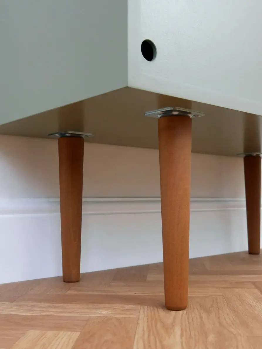 Choose from short, medium or long wooden legs. They are solid beech, they can be treated with clear wax or stained: Teak.