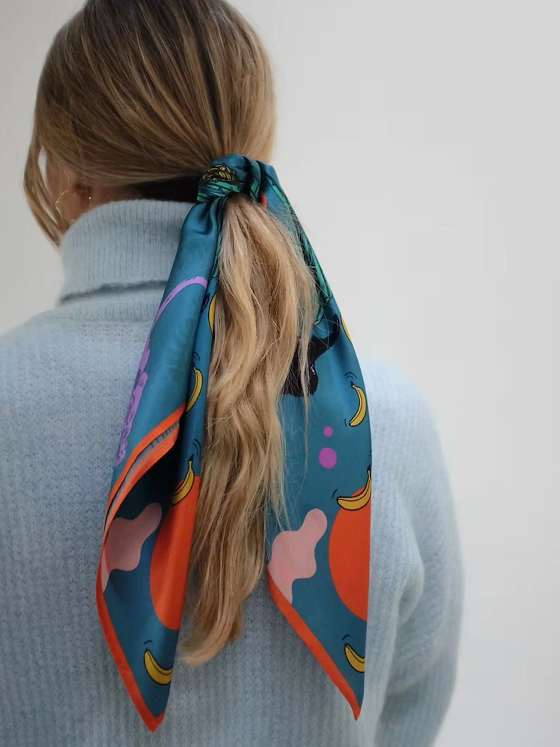 Tie up your hair, hang loosely over your shoulders, around your neck or tied to your bag. An elegant, joyful accessory however you like to wear it.