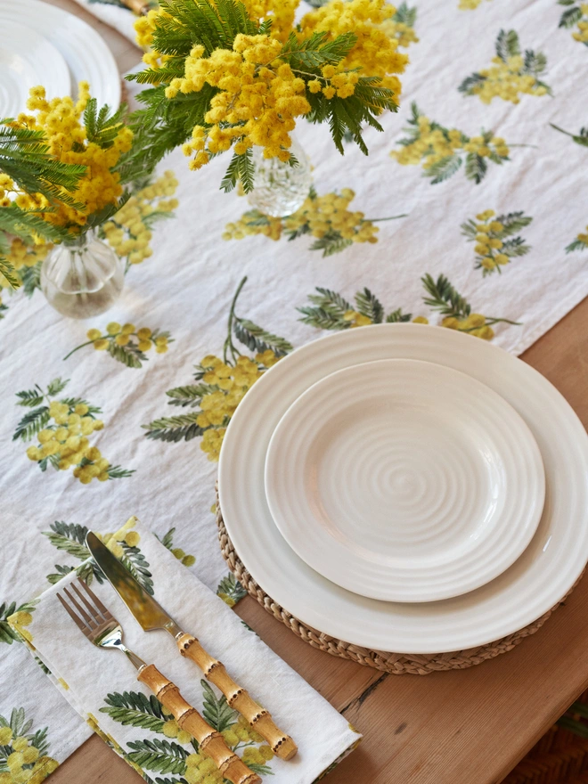 Introducing our Mimosa design. Bright, uplifting and full of sunshine, these yellow cloud-like blooms are widely recognised as a symbol of strength, resilience and sensitivity – especially celebrated on International Women’s Day. This print brings warmth and joy to your table.