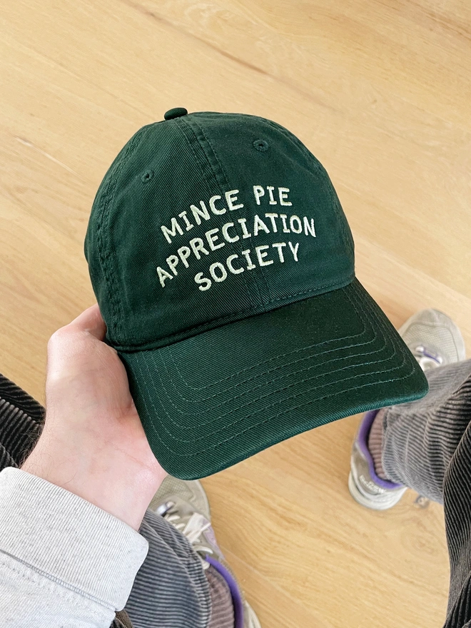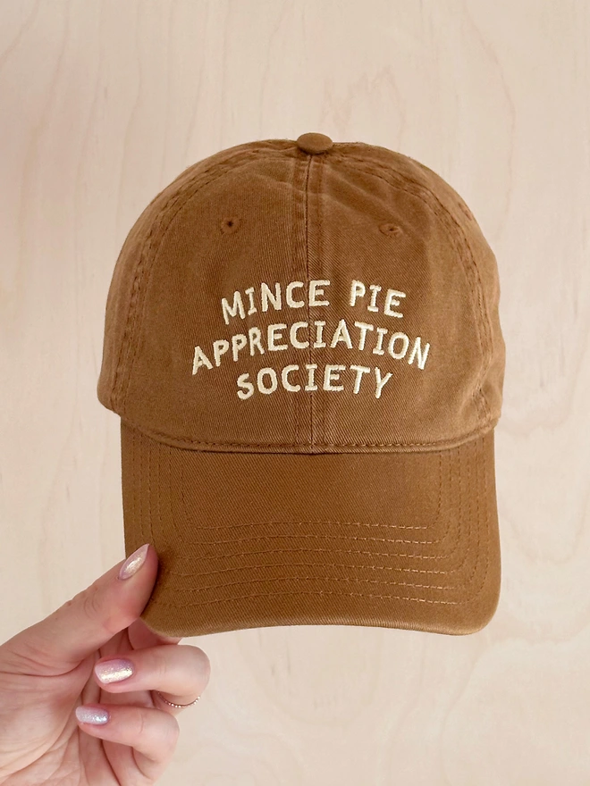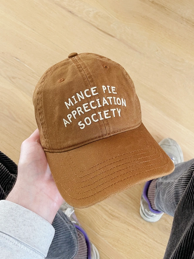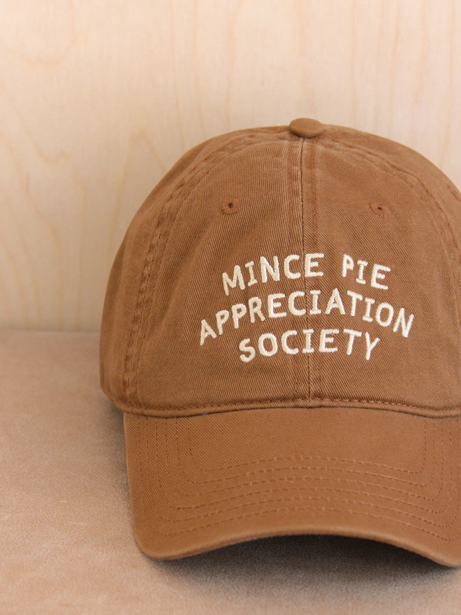 Join the club with our Mince Pie Appreciation Society baseball cap, the perfect accessory for anyone who takes their festive snacking seriously!