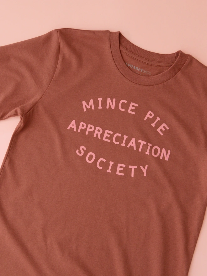Our hand drawn 'Mince Pie Appreciation Society' design has been screen printed onto a soft, 100% organic t-shirt.