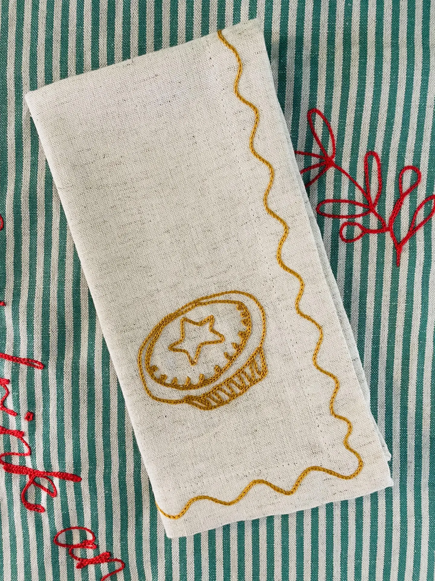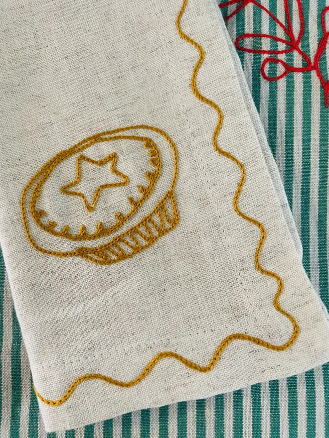 Mince Pie Embroidered Napkin. Perfect for Christmas!