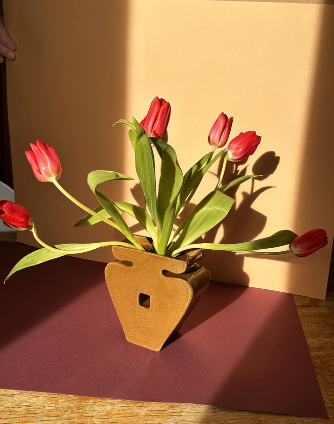 The Ace Vase, but small and compact enough to fit in any cosy little corner of your home. Best suited to two or three stems with big fluffy heads, or as an object in its own right.
