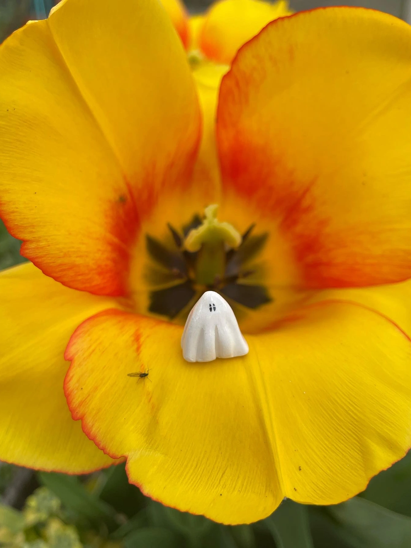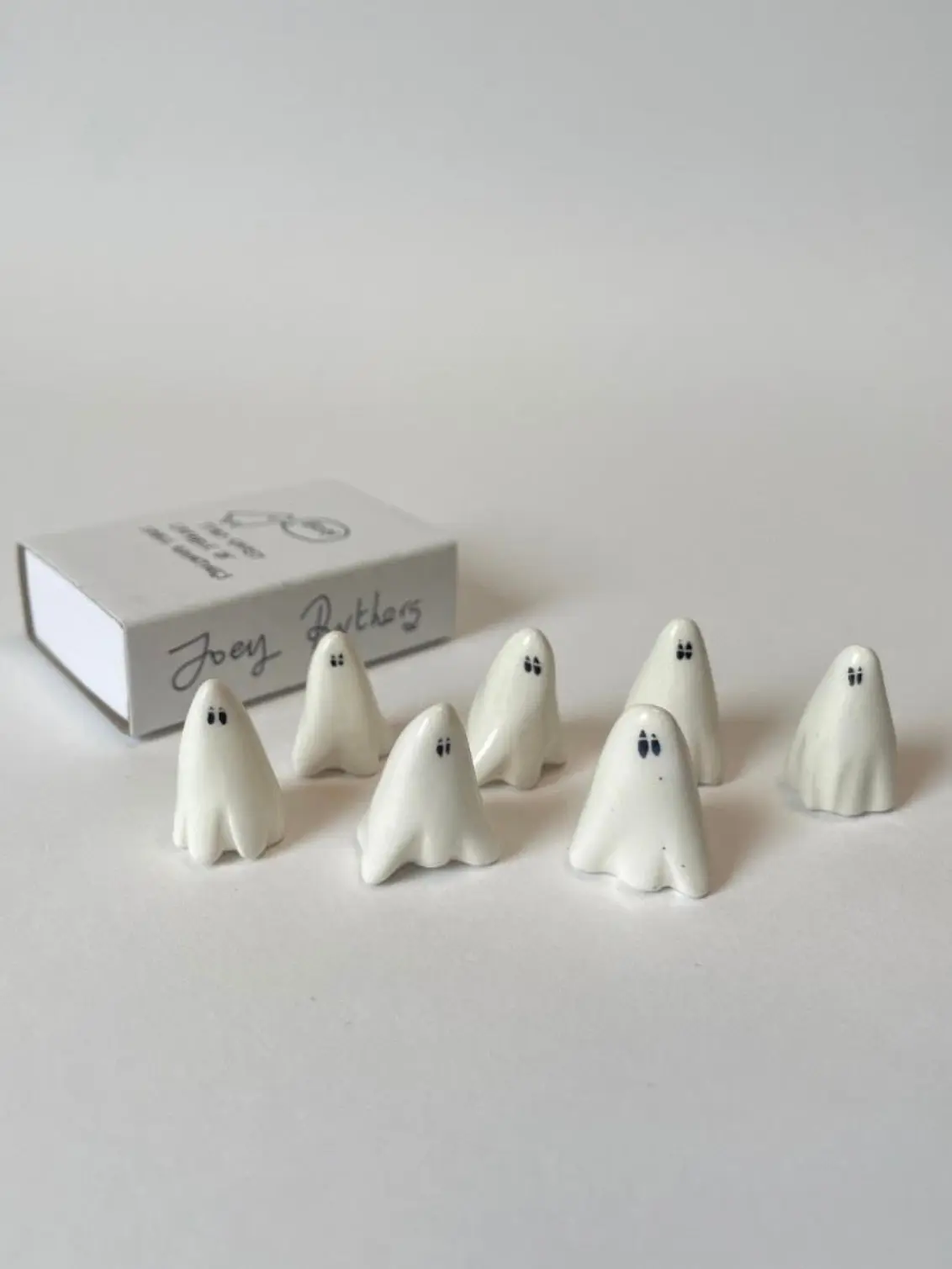Handmade ceramic earthenware mini ghost. Each ghost is formed by hand with hand painted wee eyeballs then glazed.