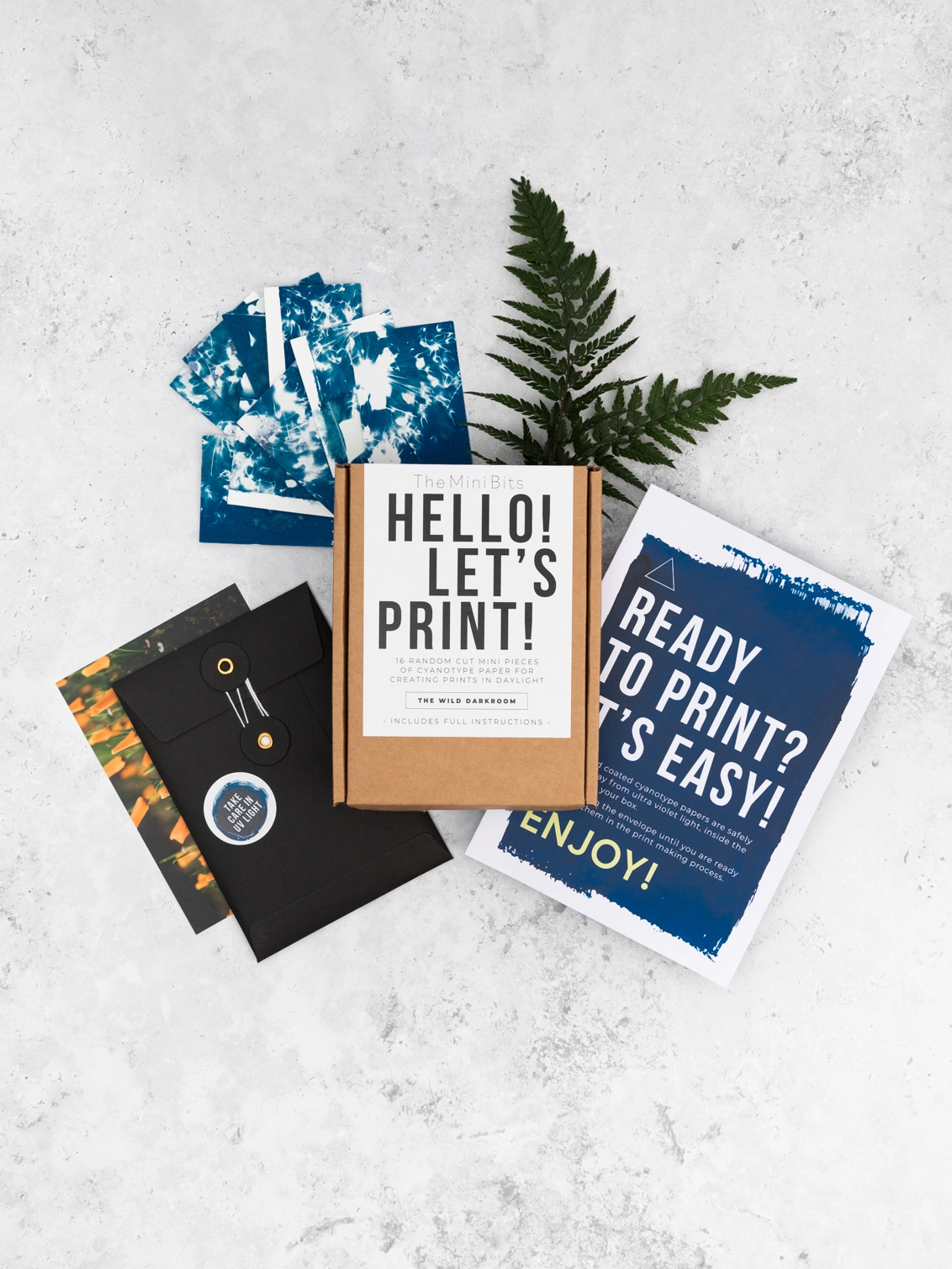 Mini Cyanotype Paper – Create Beautiful Prints with Natural Light. Our Mini Cyanotype Paper is UV-sensitive, making it easy to create stunning blue photographic prints using simple objects and daylight. Perfect for beginners and experienced creatives. The mini size is ideal for little hands, crafting cards, or making mini prints to display at home. The process is incredibly simple, and the paper comes ready to use straight from the box. Just add a few household items and let the sun do the work!