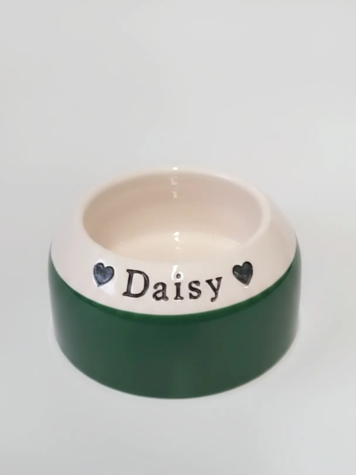Shaped to keep ears comfortably out of the way, and small enough for little appetites, each bowl is handmade to order by me, in my Hampshire studio. You choose the glaze, personalise it with your dog’s name (or nickname – I won’t judge), and I'll craft something as individual as they are.