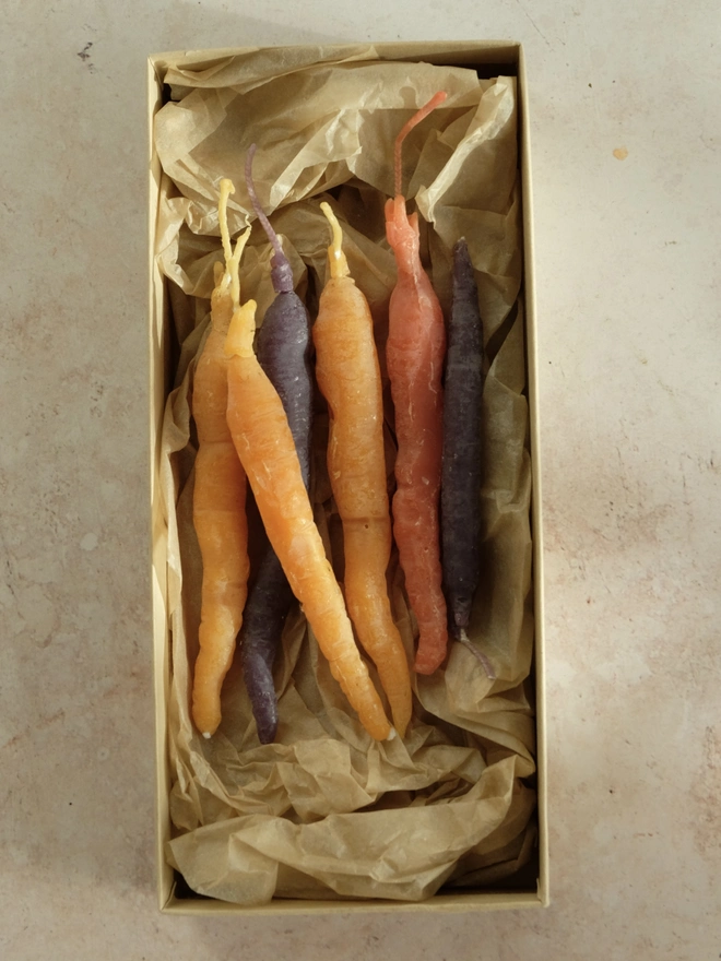 Mini rainbow carrot Candle Set made from pure beeswax 🌾