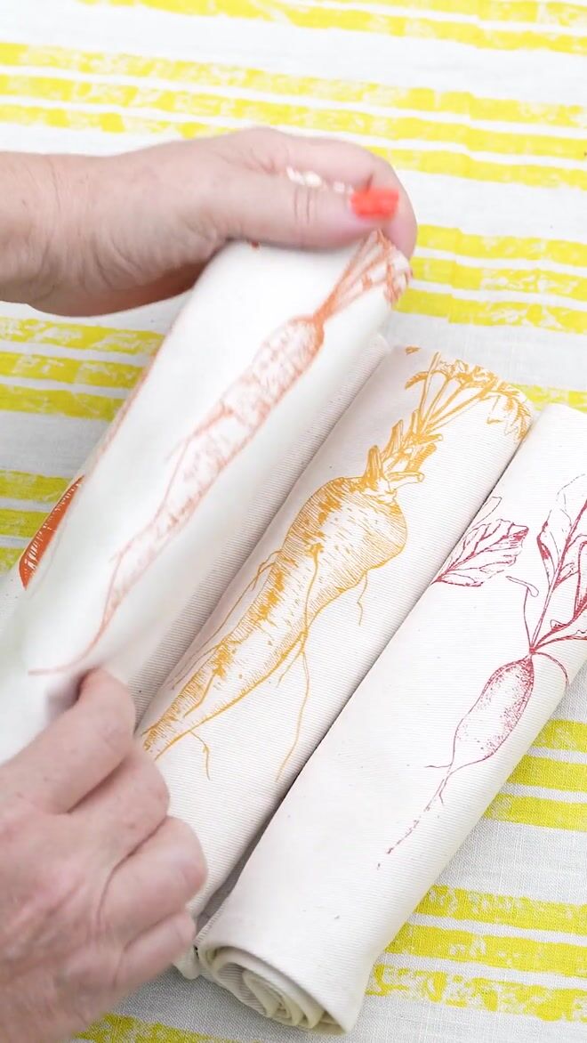 A great idea for wedding lists or veggie themed table favours, these rustic napkins are the perfect thank you gift.