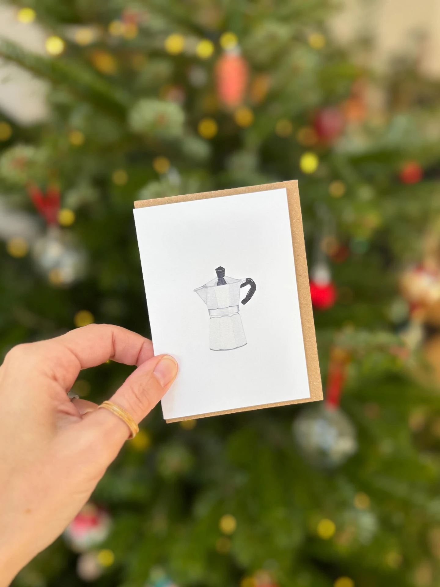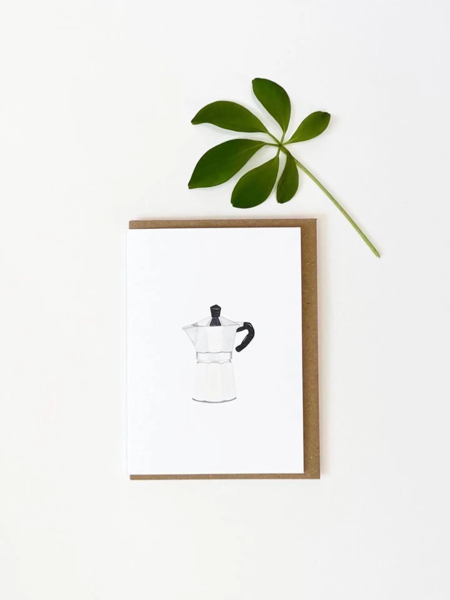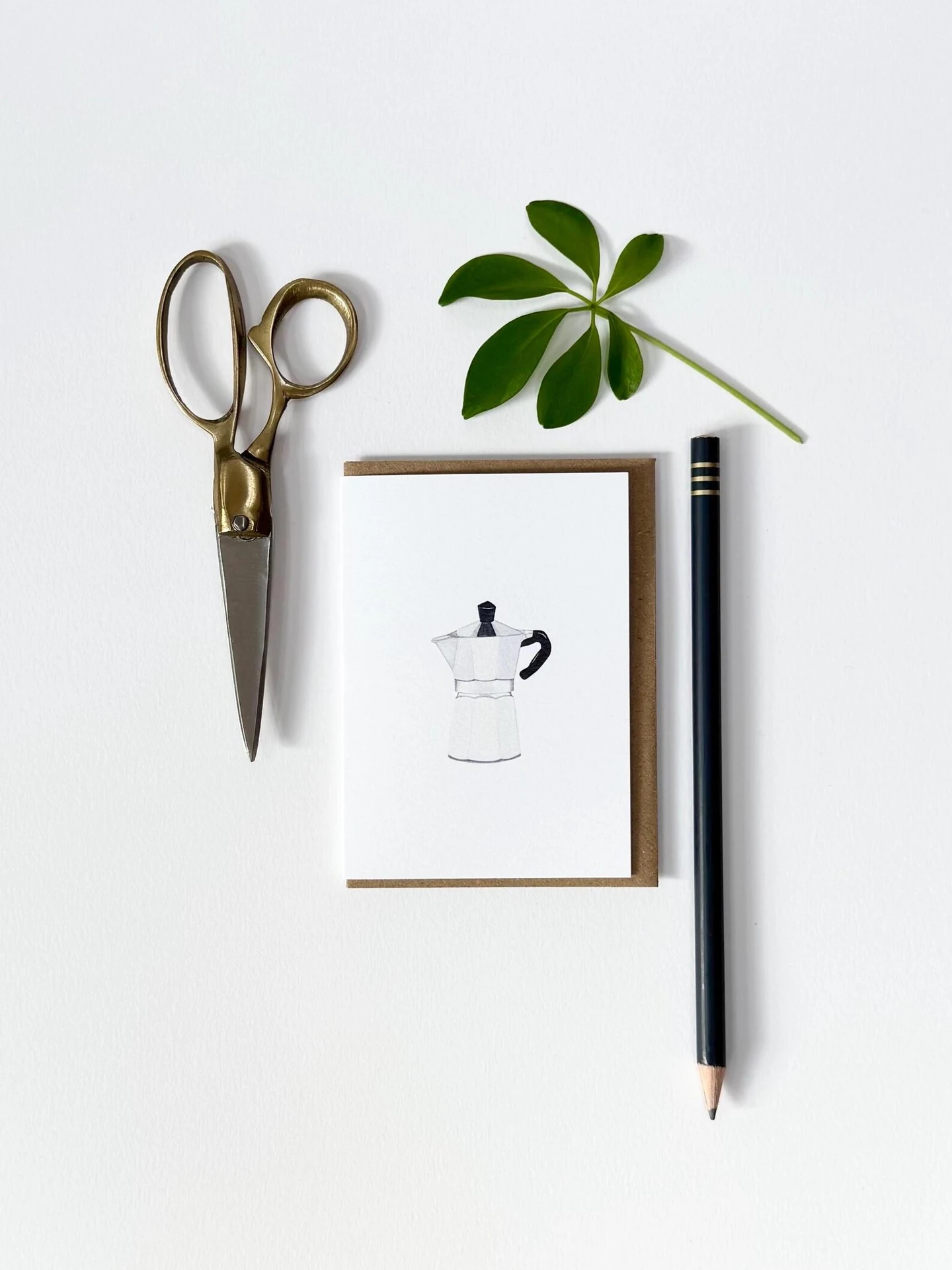 A classic Moka Pot coffee pot. This watercolour illustrated mini card is perfect for the lover of coffee and espresso in particular. The card is hand painted by me and professionally printed on delicately textured matte white 324 gsm luxury print paper.