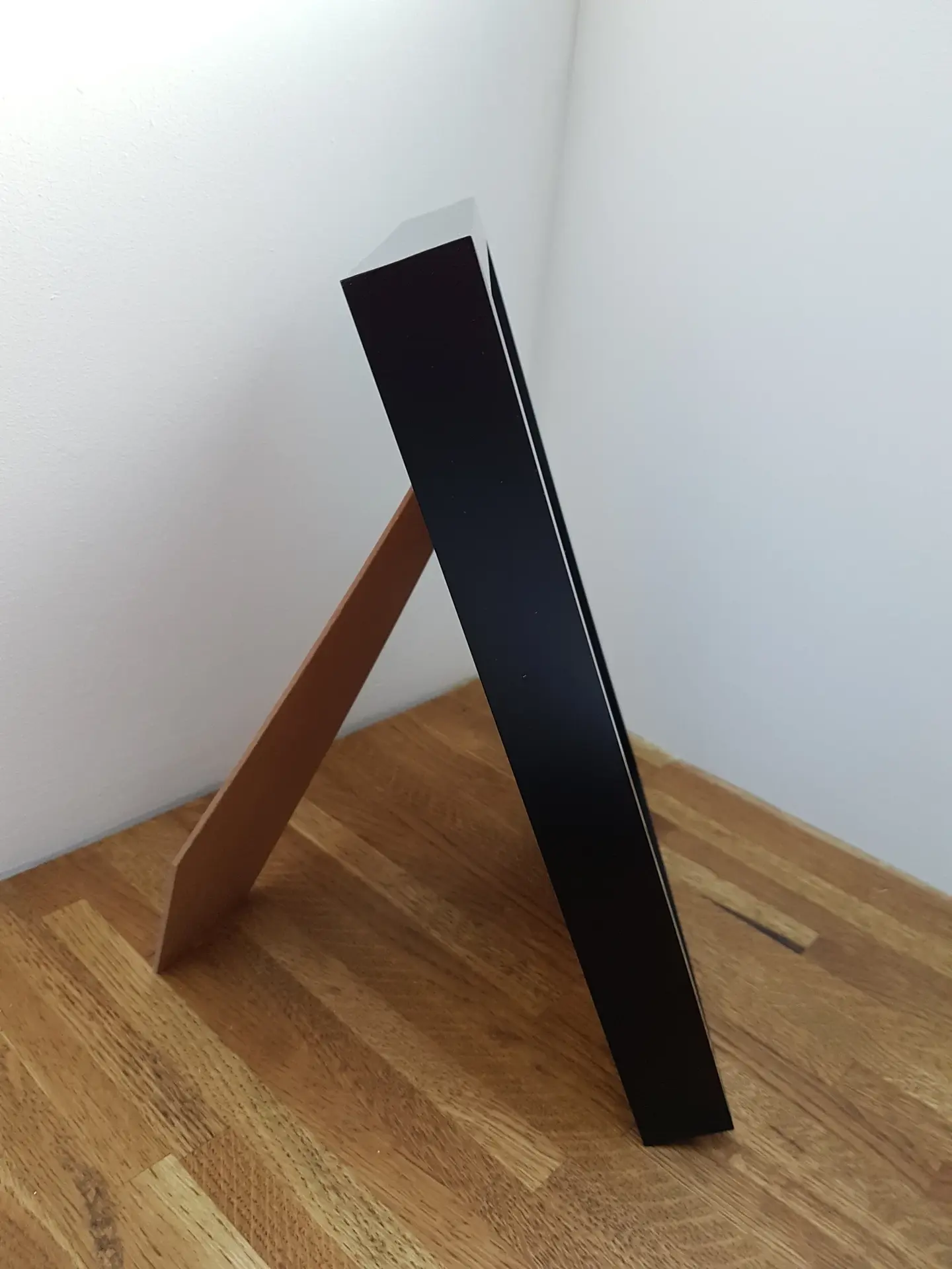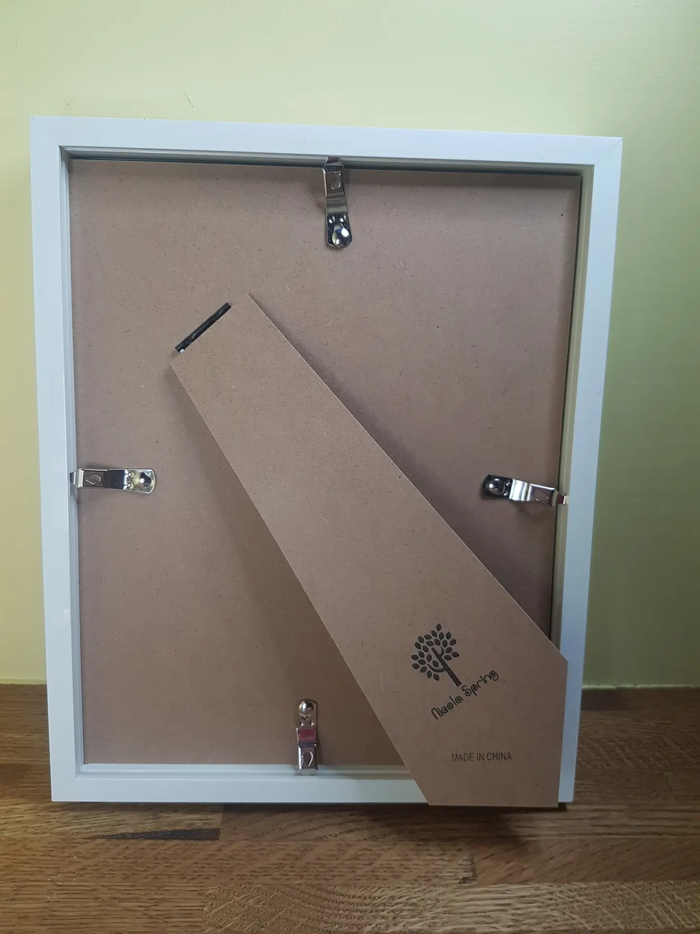 The piece comes framed in a 10" x 12 "deep box wooden frame (with glass) in Black or White.