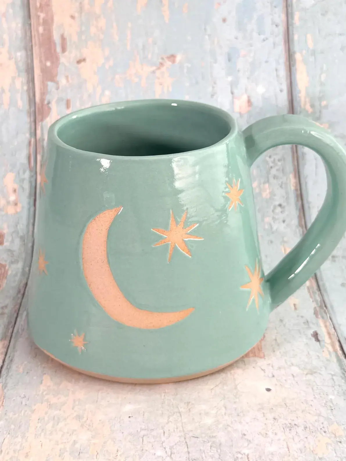 Moon & Star Celestial Ceramic Mug Turquoise