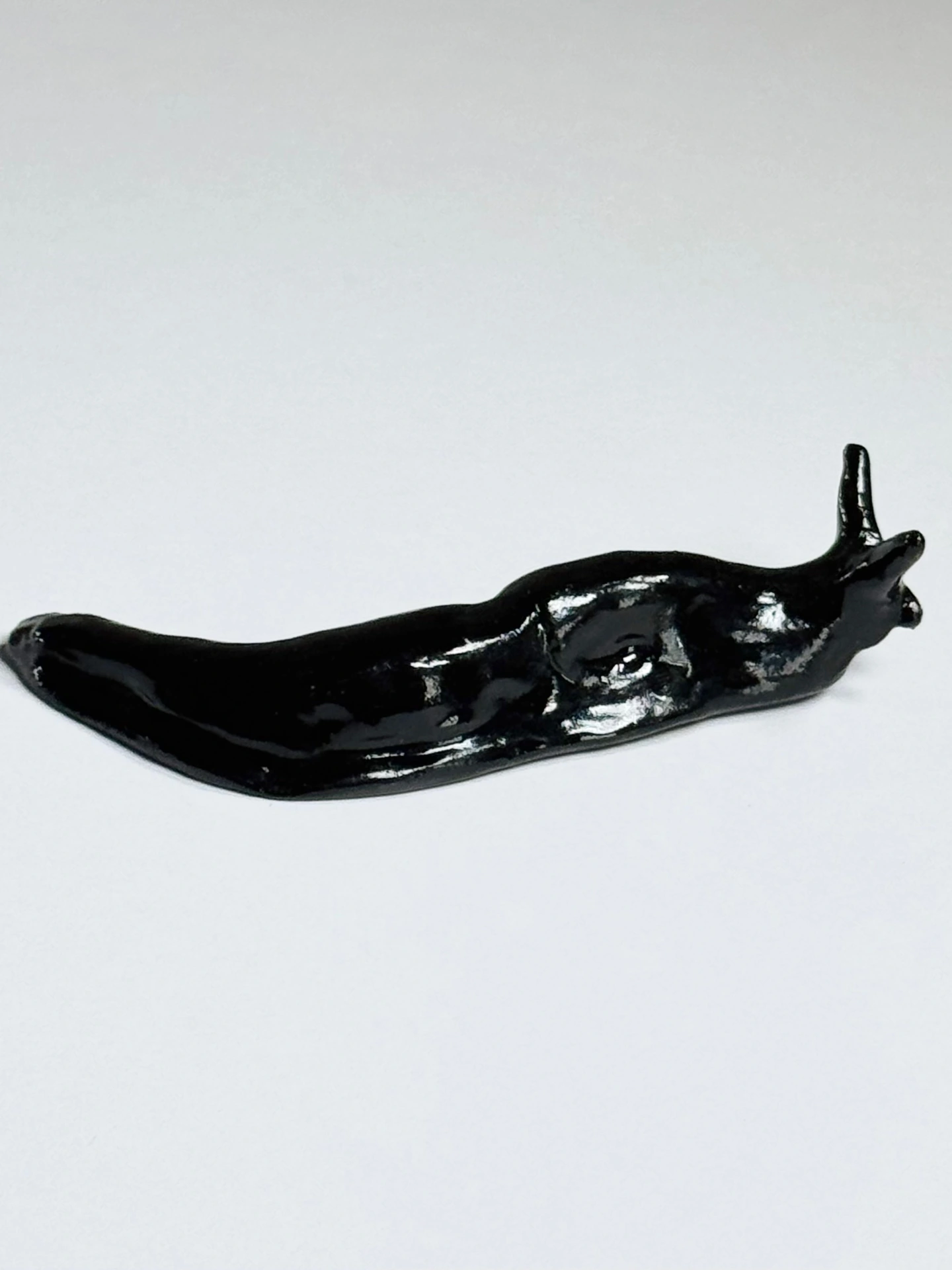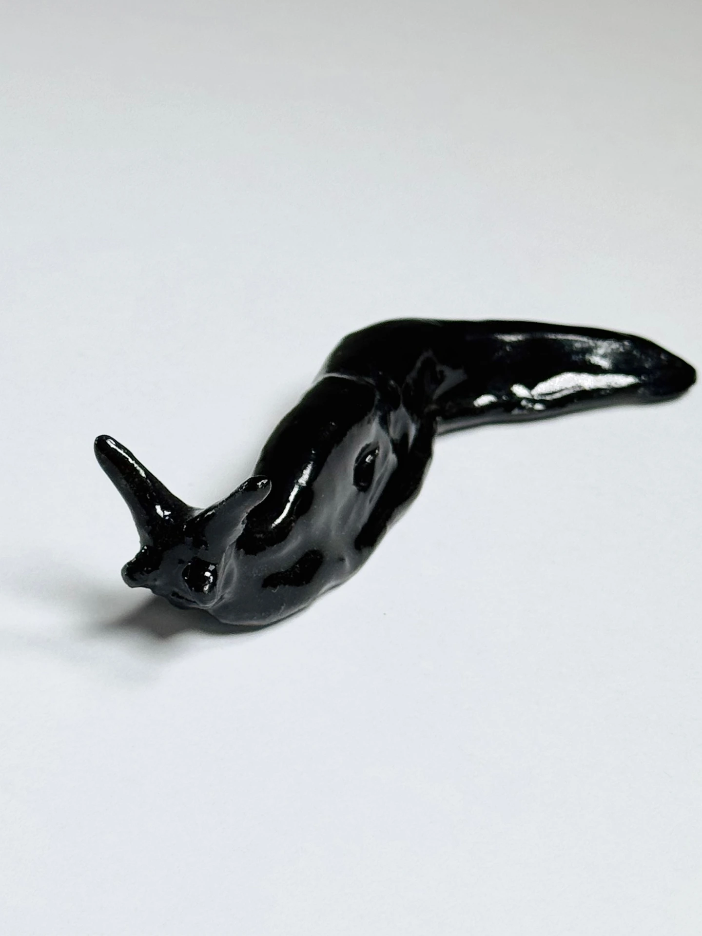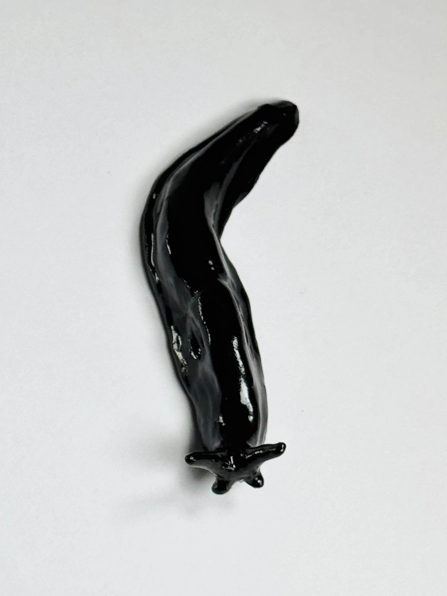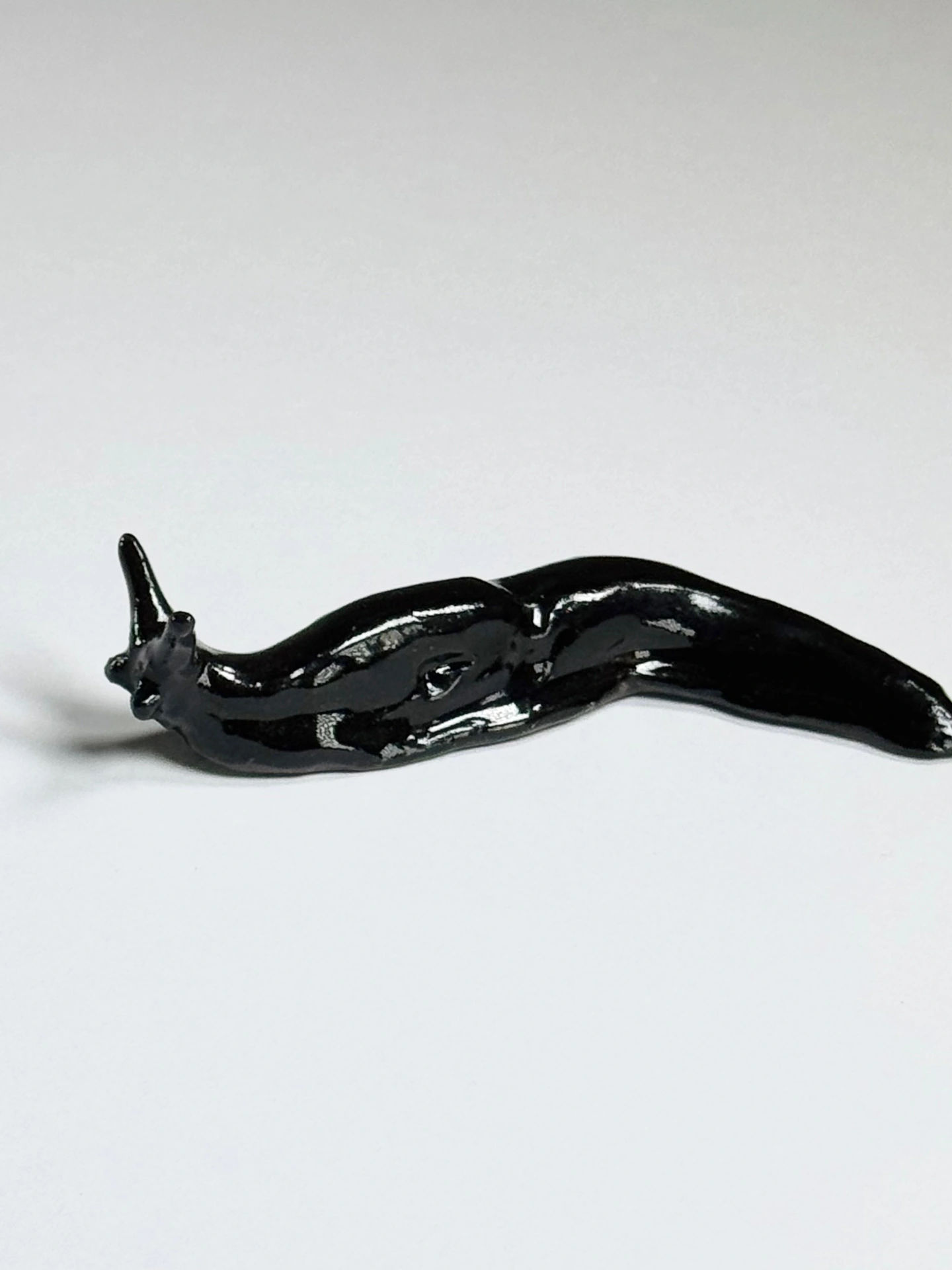 Small stoneware ceramic slug sculpture by Tally Walker Warne. Each small slug is gift packaged in a black, snap shut, magnetic gift box with a ribbon tab.