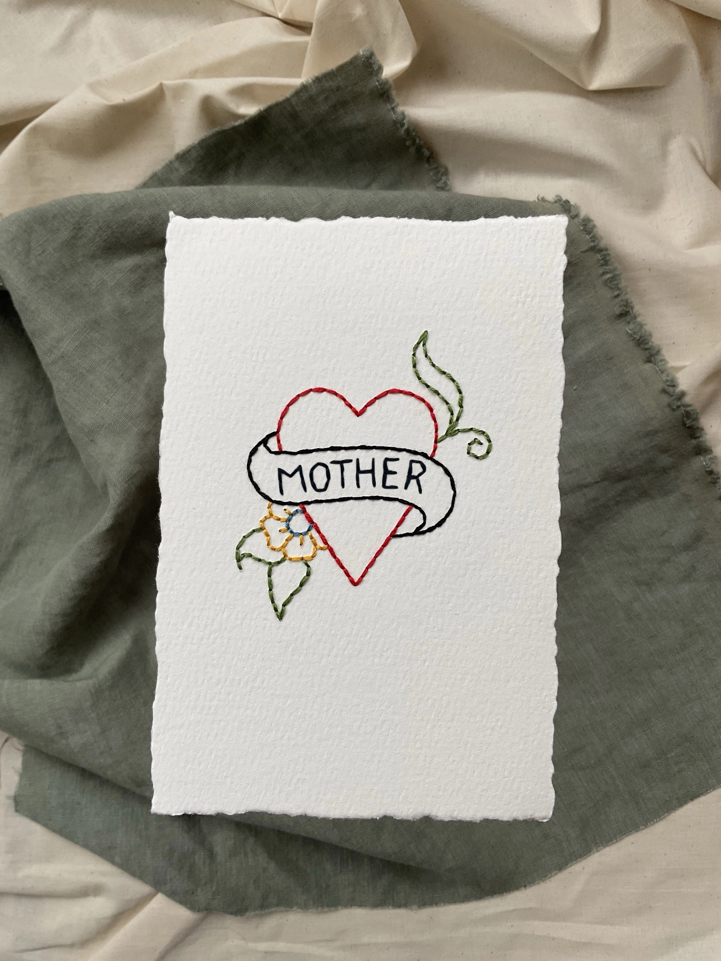 Mother’s Day ‘Heart Tattoo’ Hand Embroidered Artwork