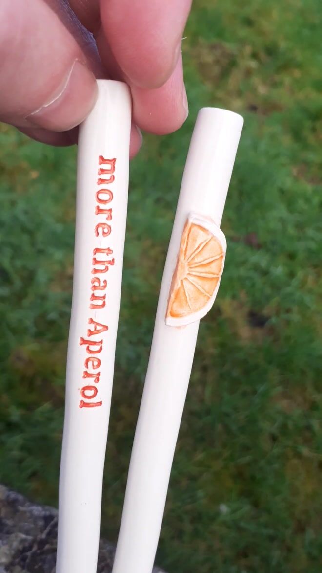 'It's Aperol Time' Ceramic Drinking Straws (Set of 2)