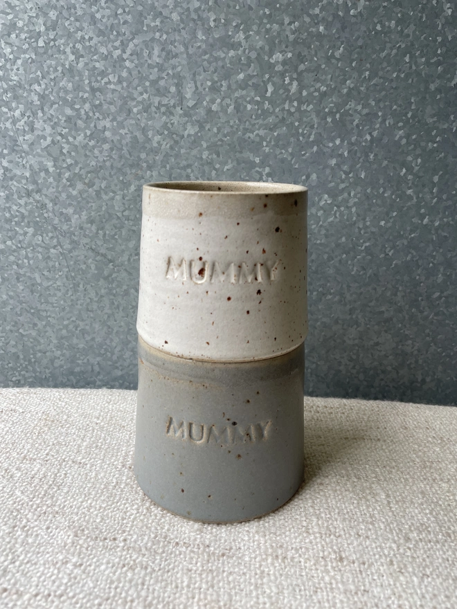Beautiful hand-thrown mug with MUMMY hand stamped on it...