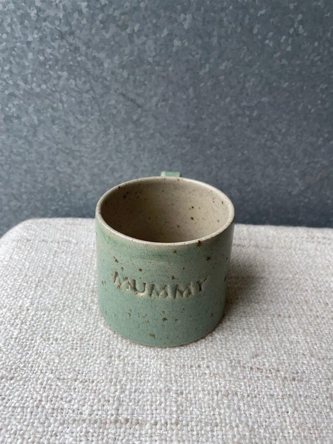 Beautiful hand-thrown mug with MUMMY hand stamped on it.